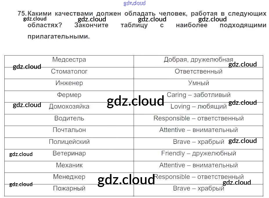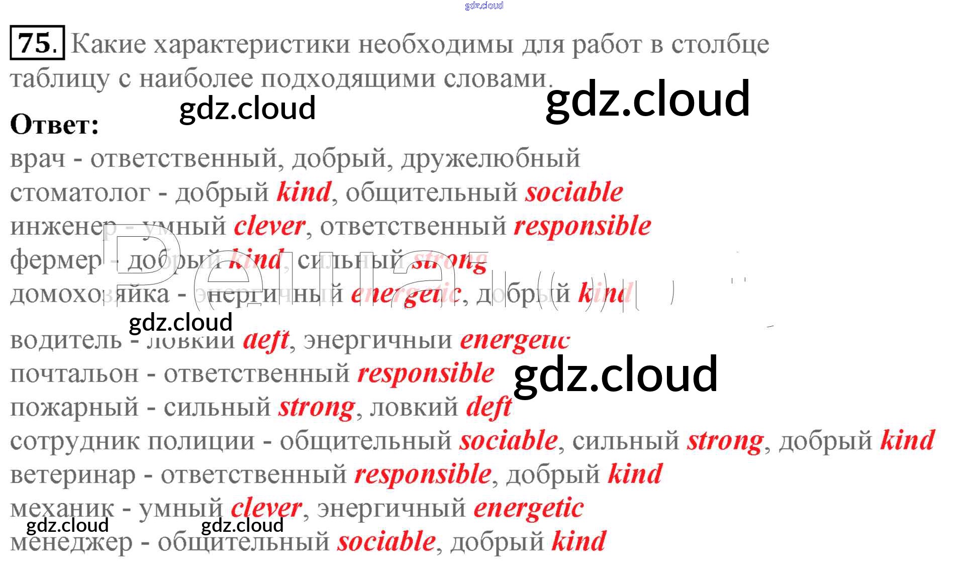 Ответ на задание 75 Учебник Английский язык за 5 (пятый) класс Биболетова, Денисенко, Трубанева Enjoy English 2015