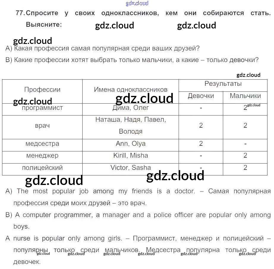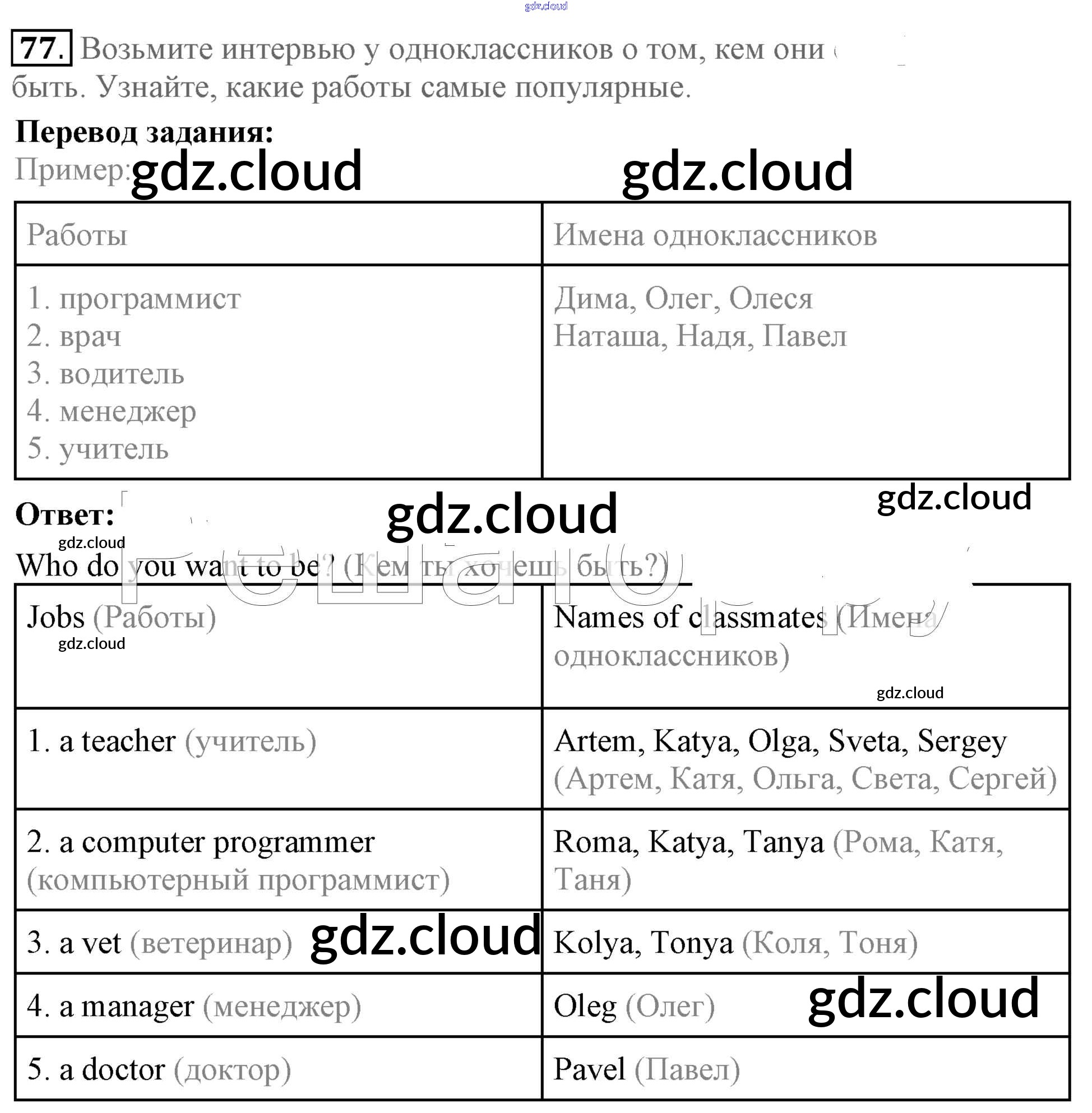 Ответ на задание 77 Учебник Английский язык за 5 (пятый) класс Биболетова, Денисенко, Трубанева Enjoy English 2015