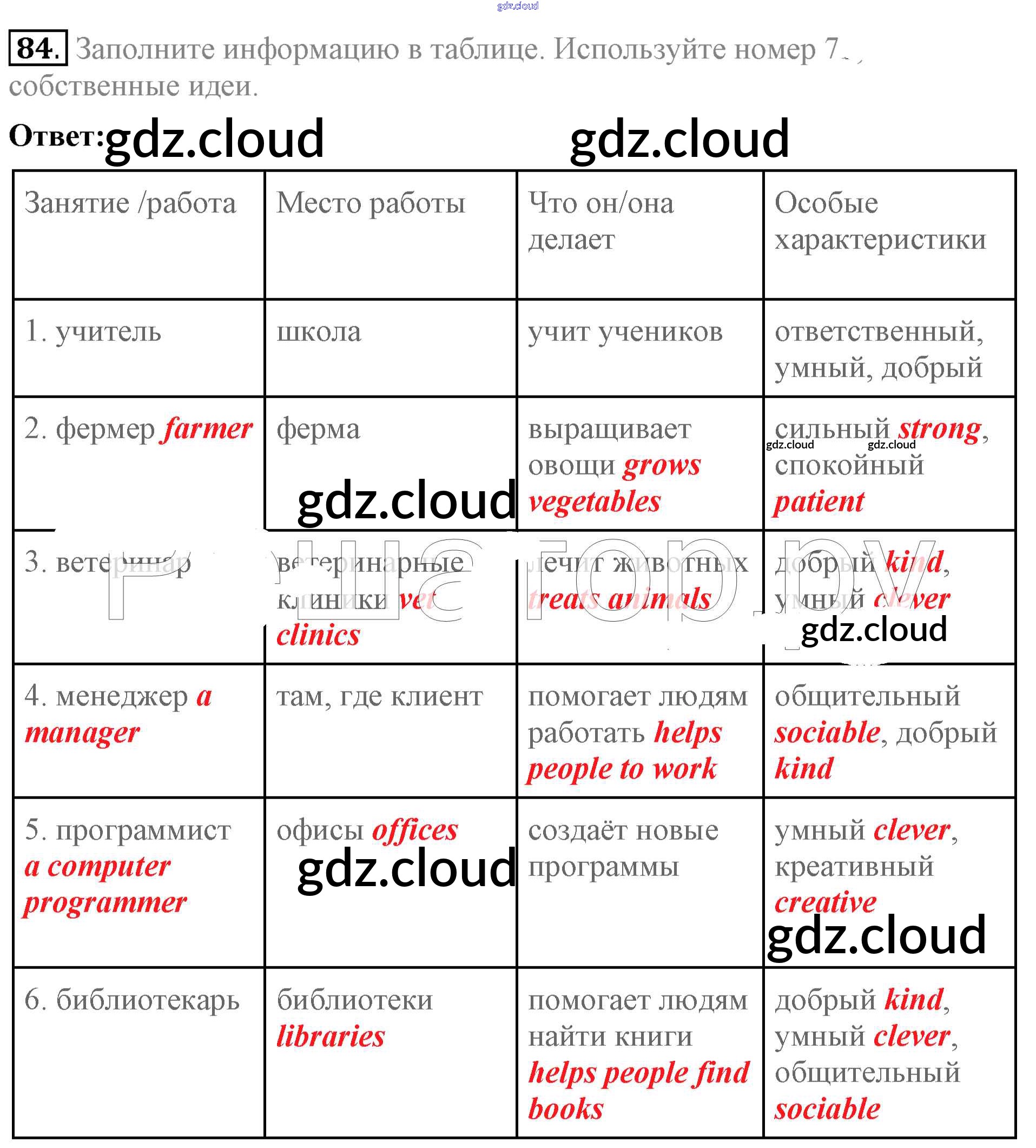 Ответ на задание 84 Учебник Английский язык за 5 (пятый) класс Биболетова, Денисенко, Трубанева Enjoy English 2015