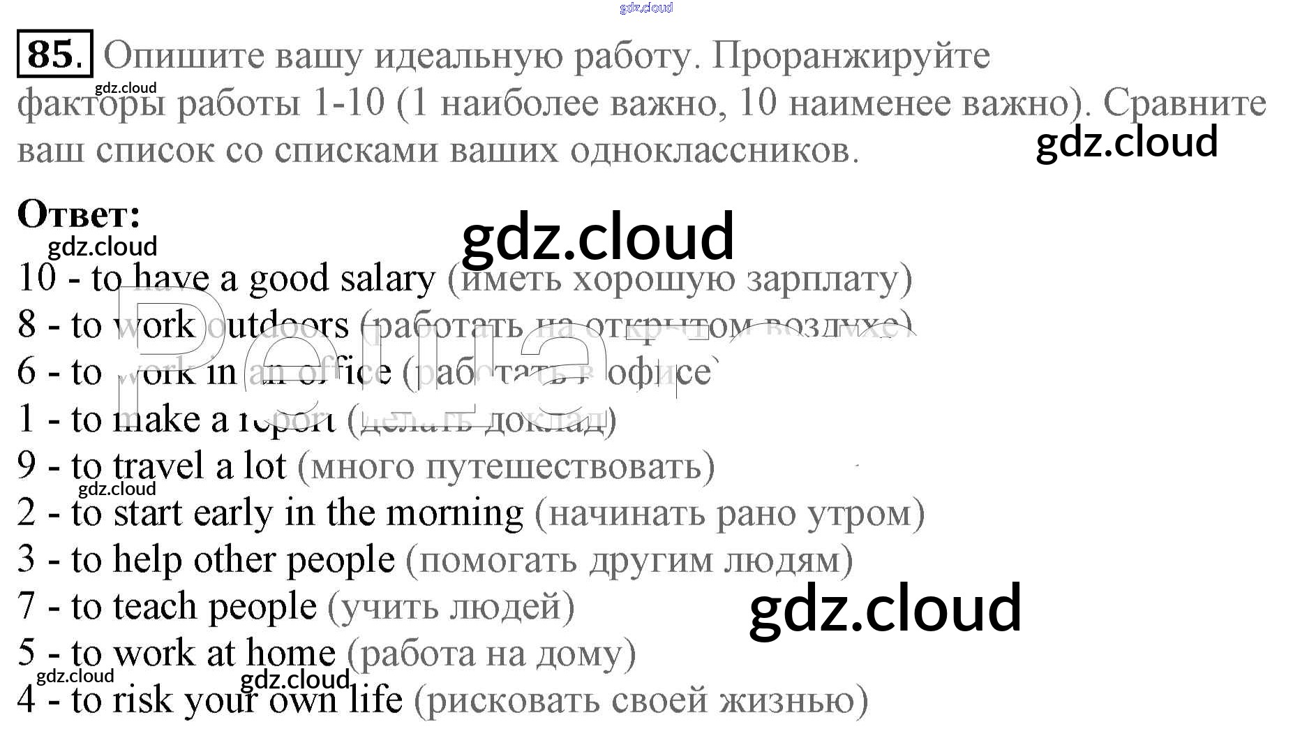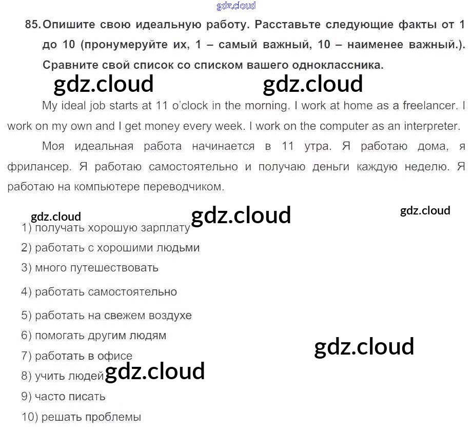 Ответ на задание 85 Учебник Английский язык за 5 (пятый) класс Биболетова, Денисенко, Трубанева Enjoy English 2015