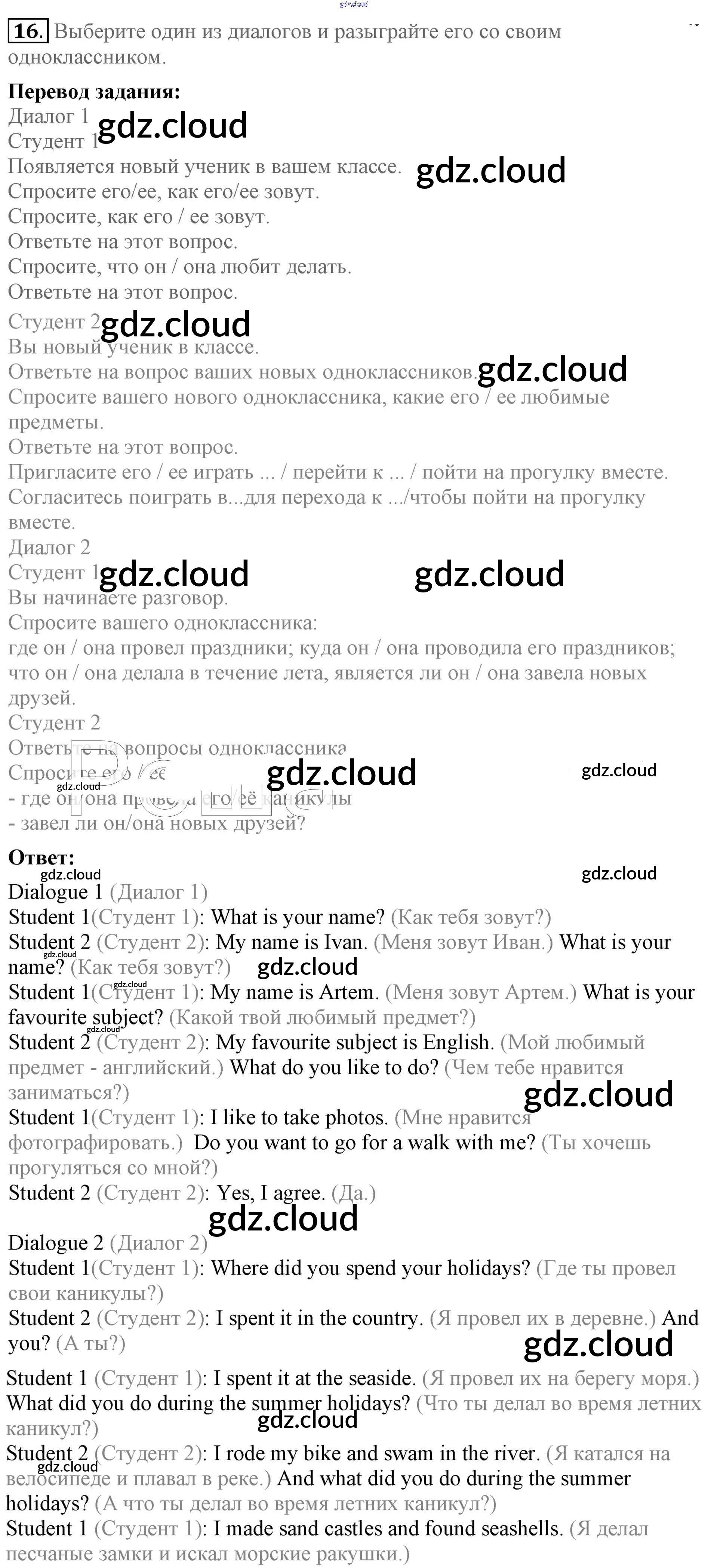 Ответ на задание 16 Учебник Английский язык за 5 (пятый) класс Биболетова, Денисенко, Трубанева Enjoy English 2015