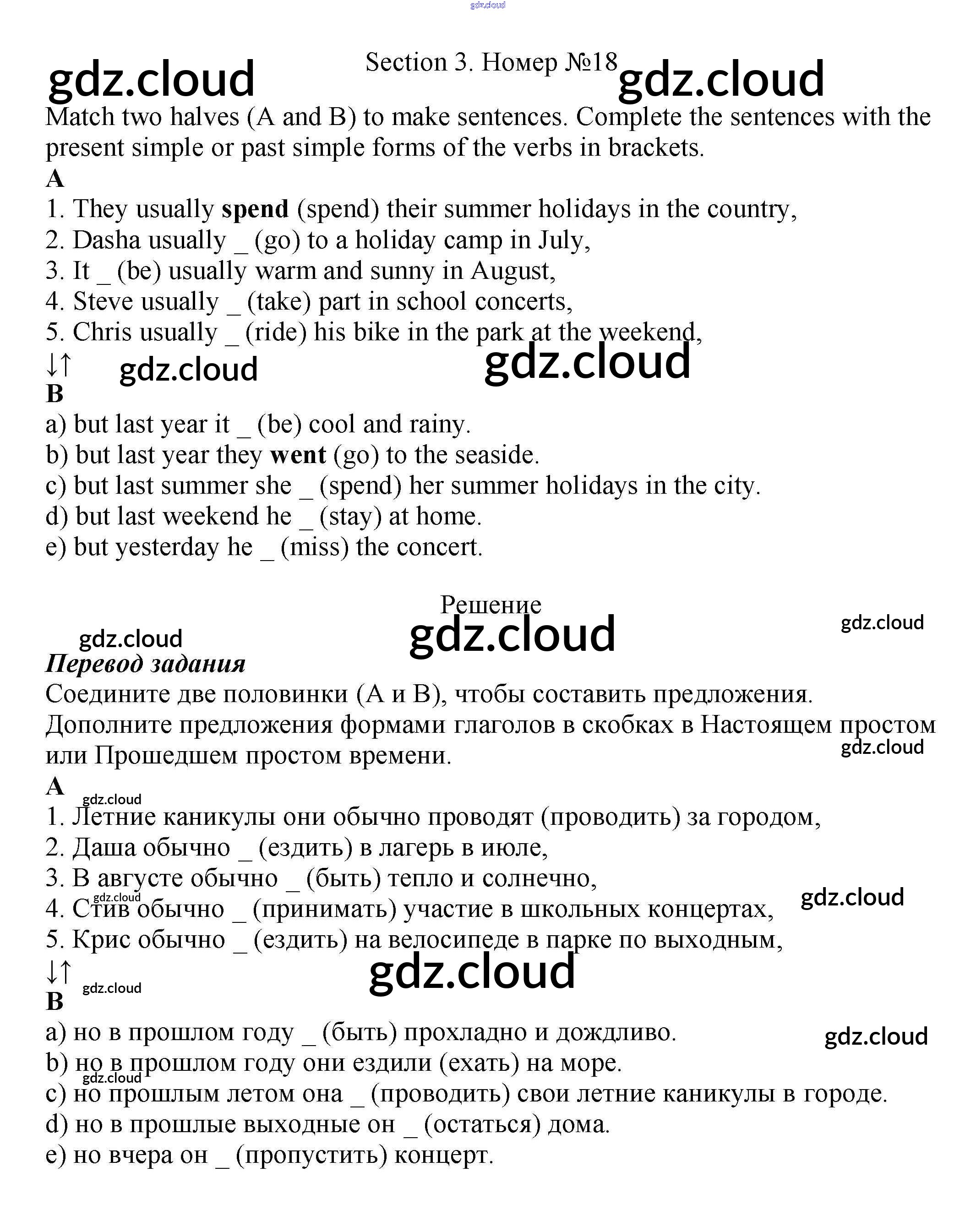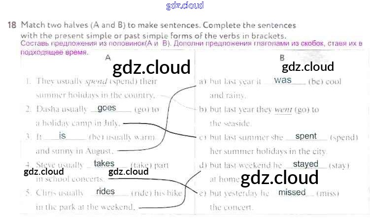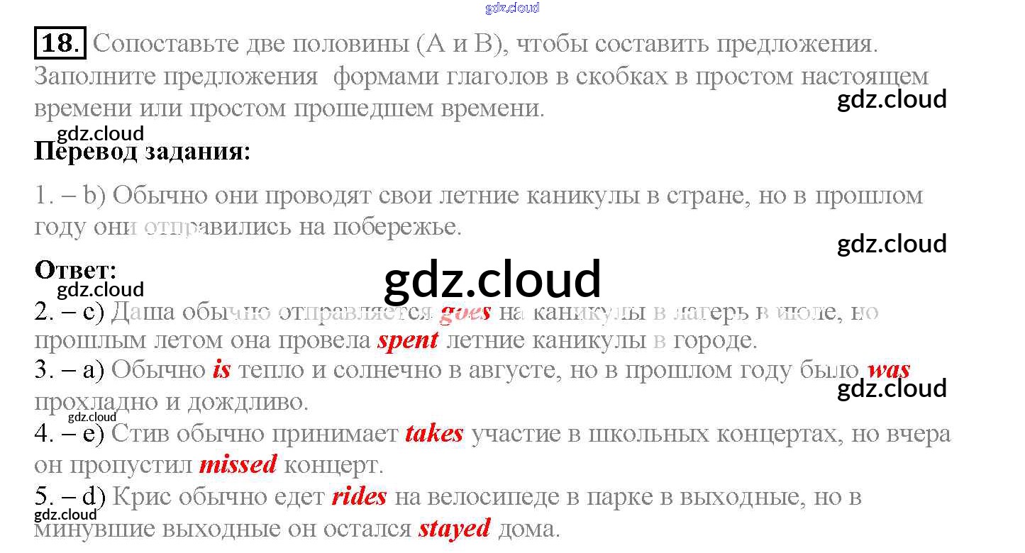 Ответ на задание 18 Рабочая тетрадь Английский язык за 5 (пятый) класс Биболетова, Денисенко, Трубанева Enjoy English 2019, 2015