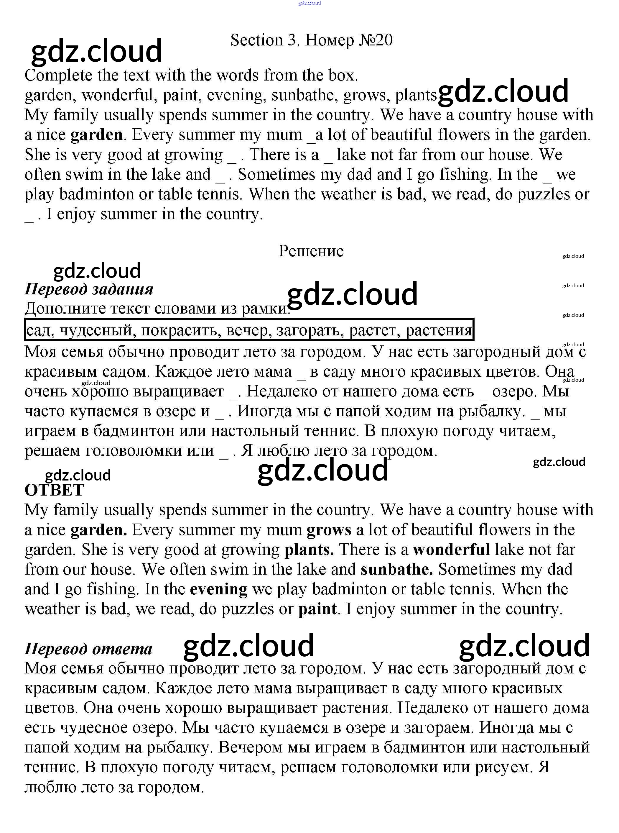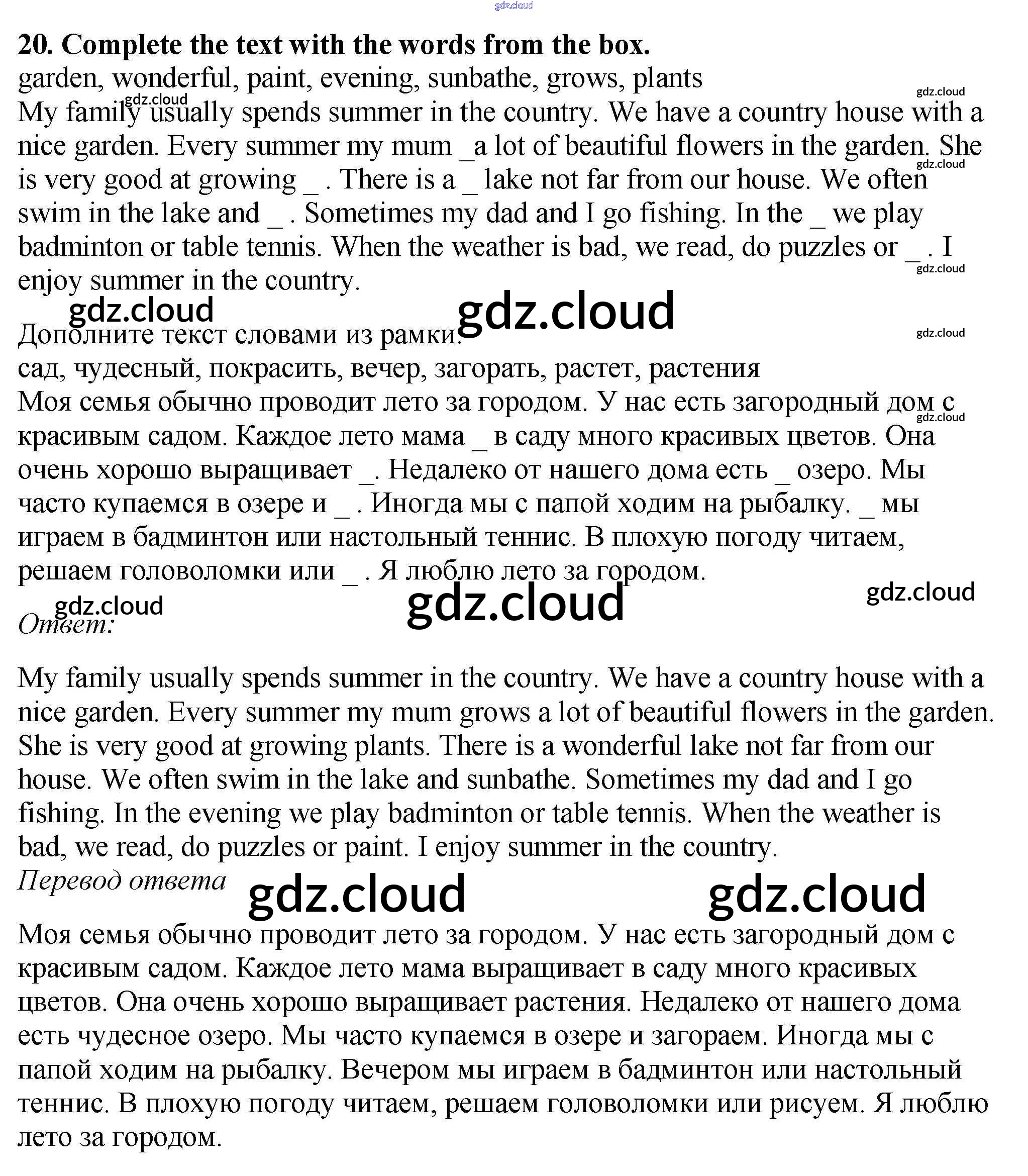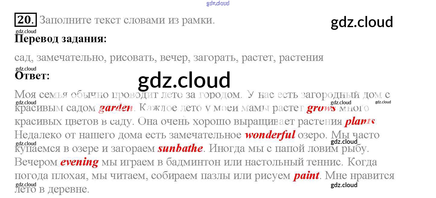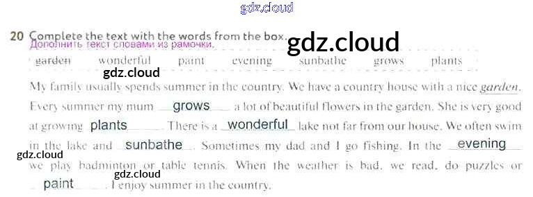 Ответ на задание 20 Рабочая тетрадь Английский язык за 5 (пятый) класс Биболетова, Денисенко, Трубанева Enjoy English 2019, 2015