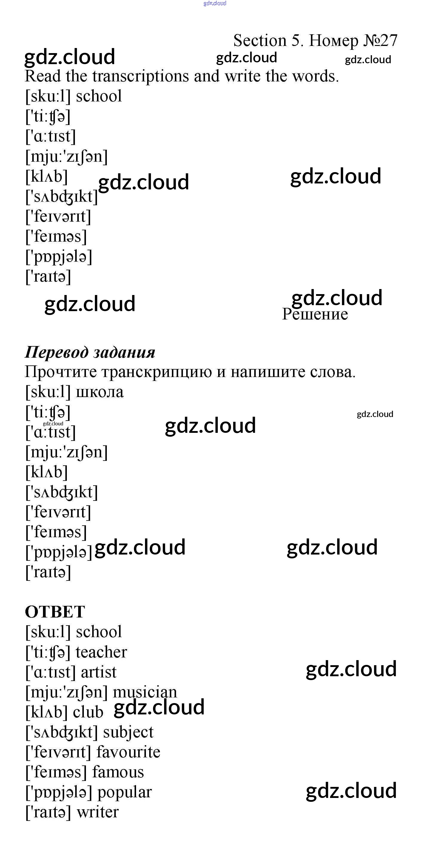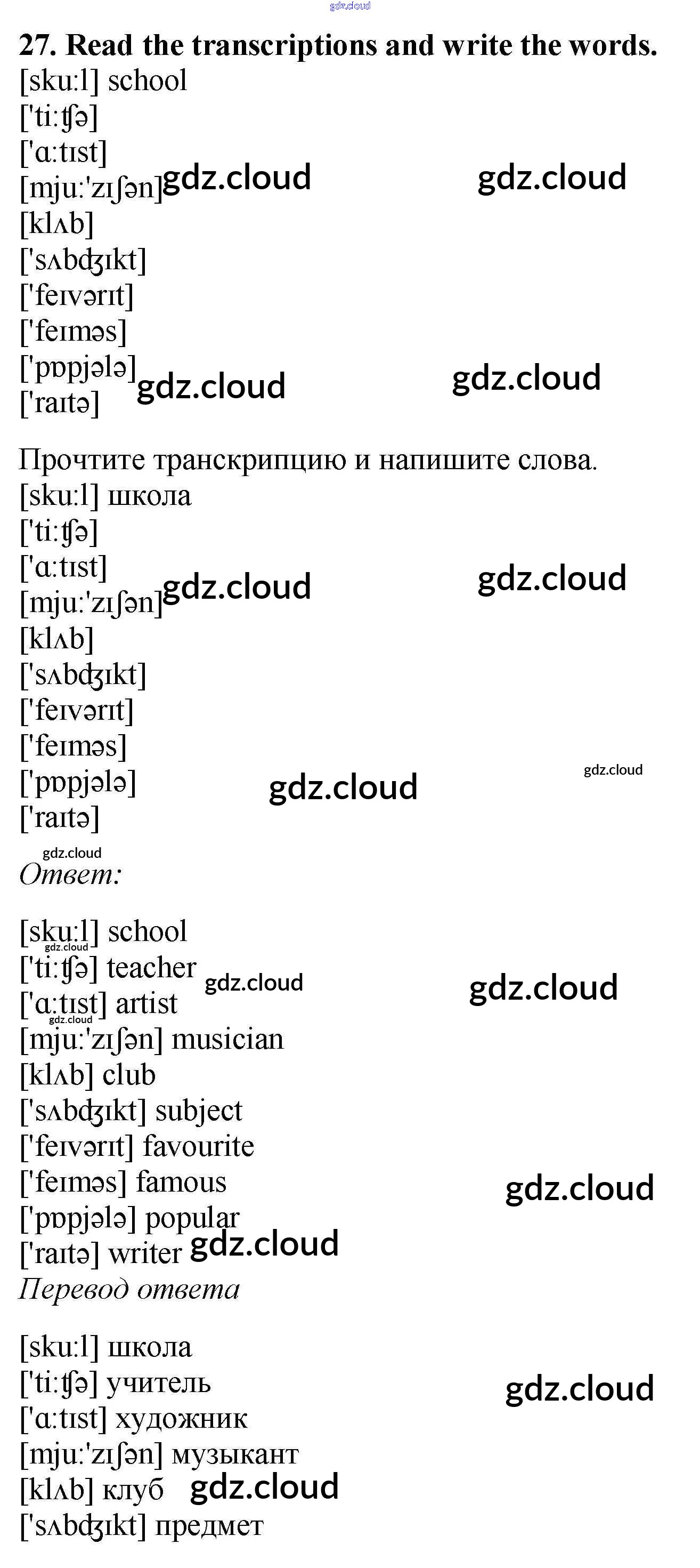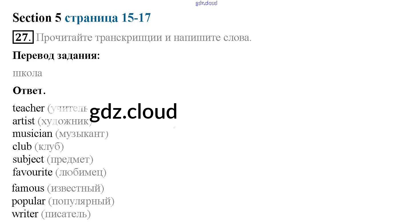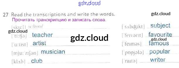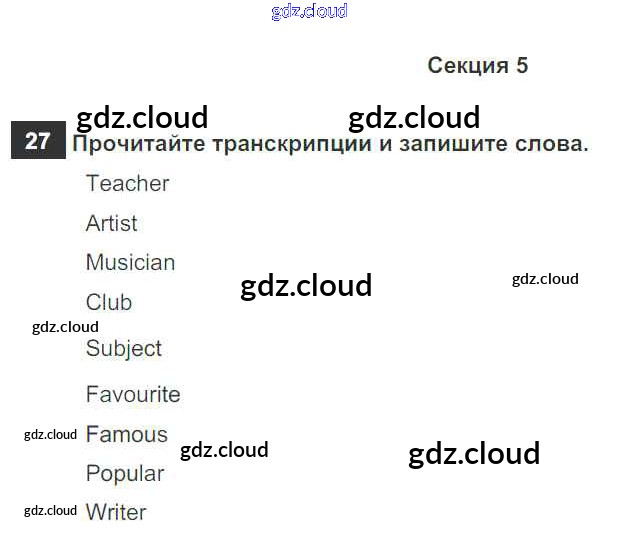 Ответ на задание 27 Рабочая тетрадь Английский язык за 5 (пятый) класс Биболетова, Денисенко, Трубанева Enjoy English 2019, 2015