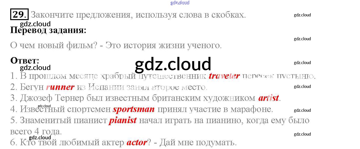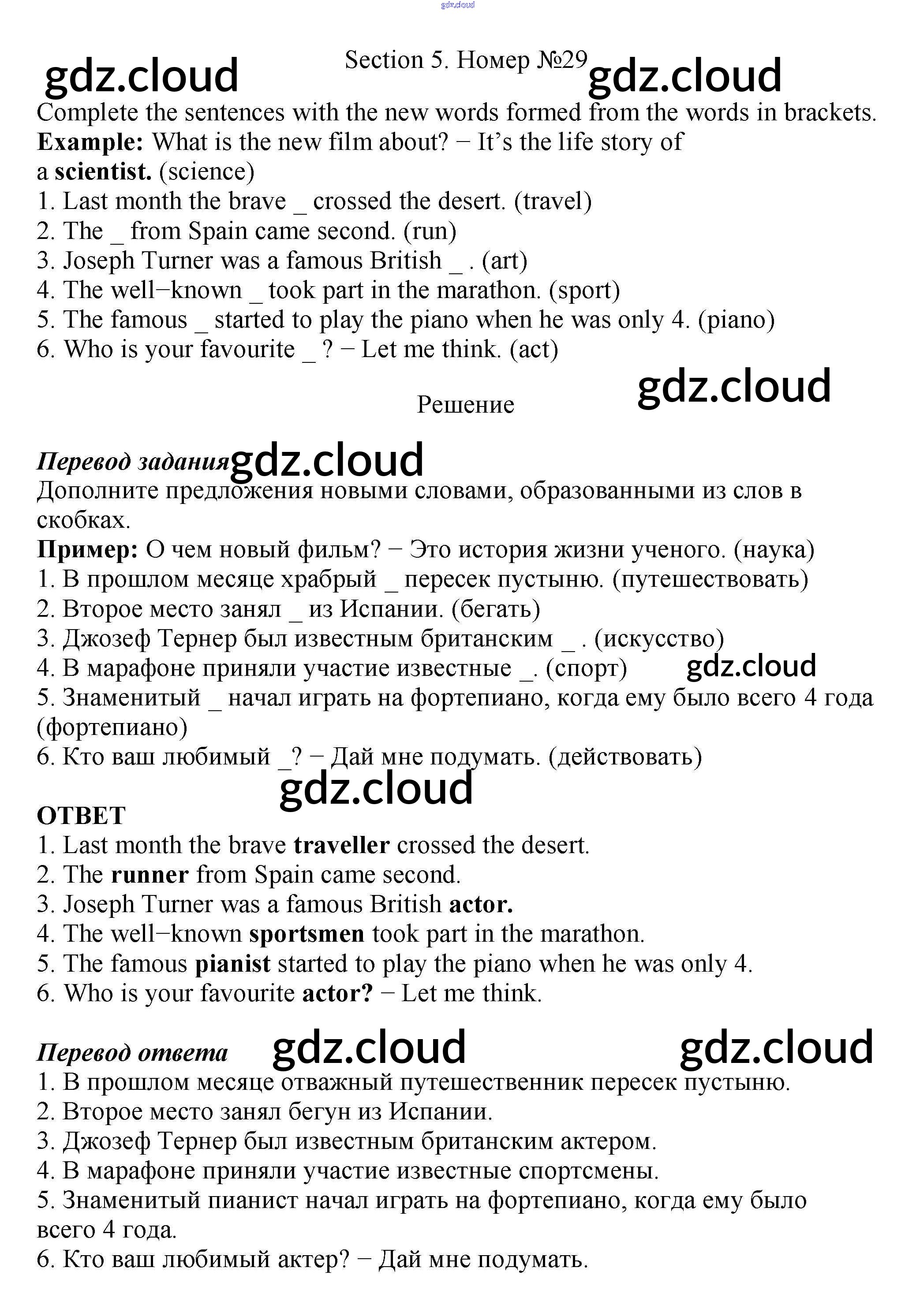 Ответ на задание 29 Рабочая тетрадь Английский язык за 5 (пятый) класс Биболетова, Денисенко, Трубанева Enjoy English 2019, 2015