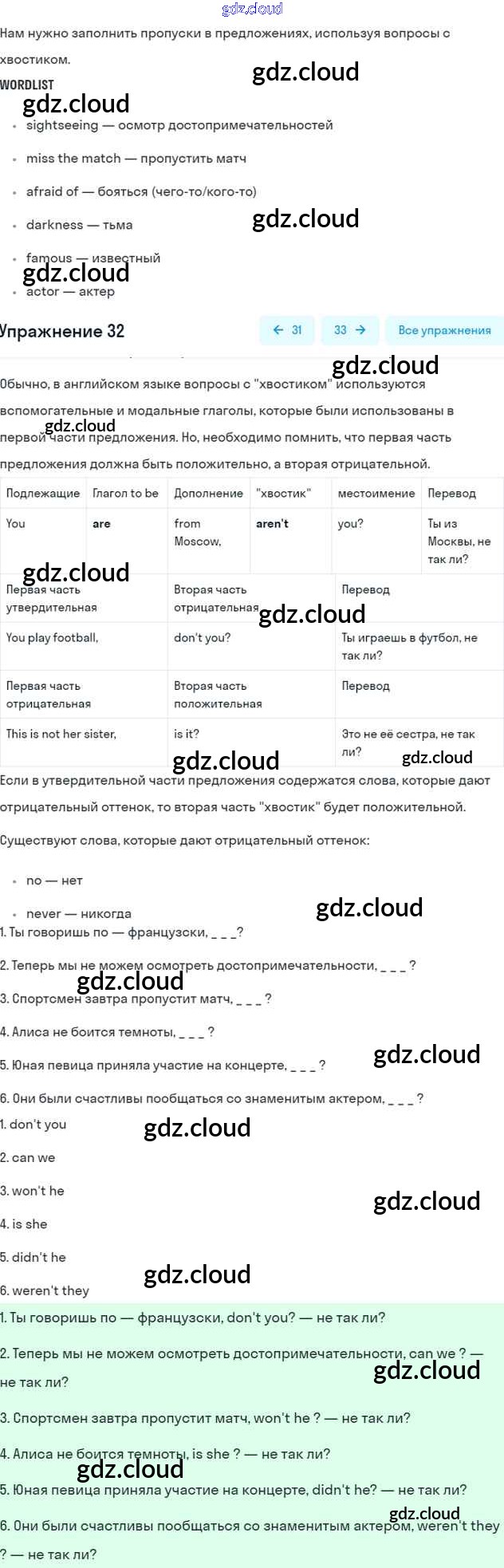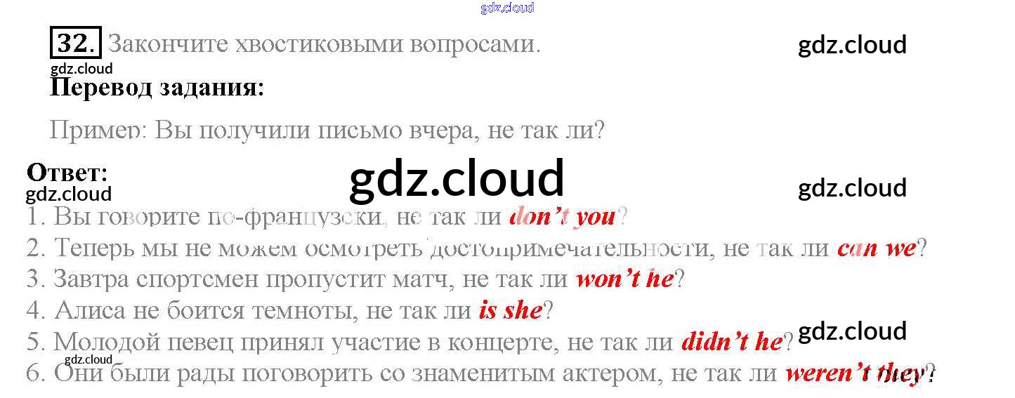 Ответ на задание 32 Рабочая тетрадь Английский язык за 5 (пятый) класс Биболетова, Денисенко, Трубанева Enjoy English 2019, 2015