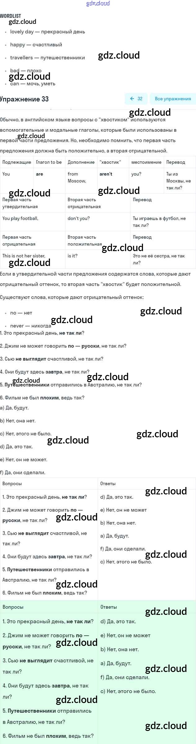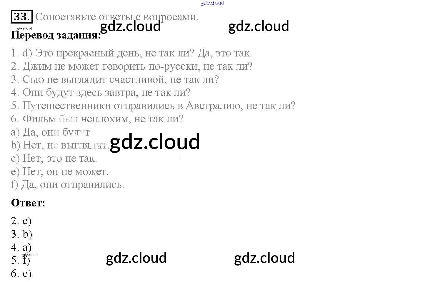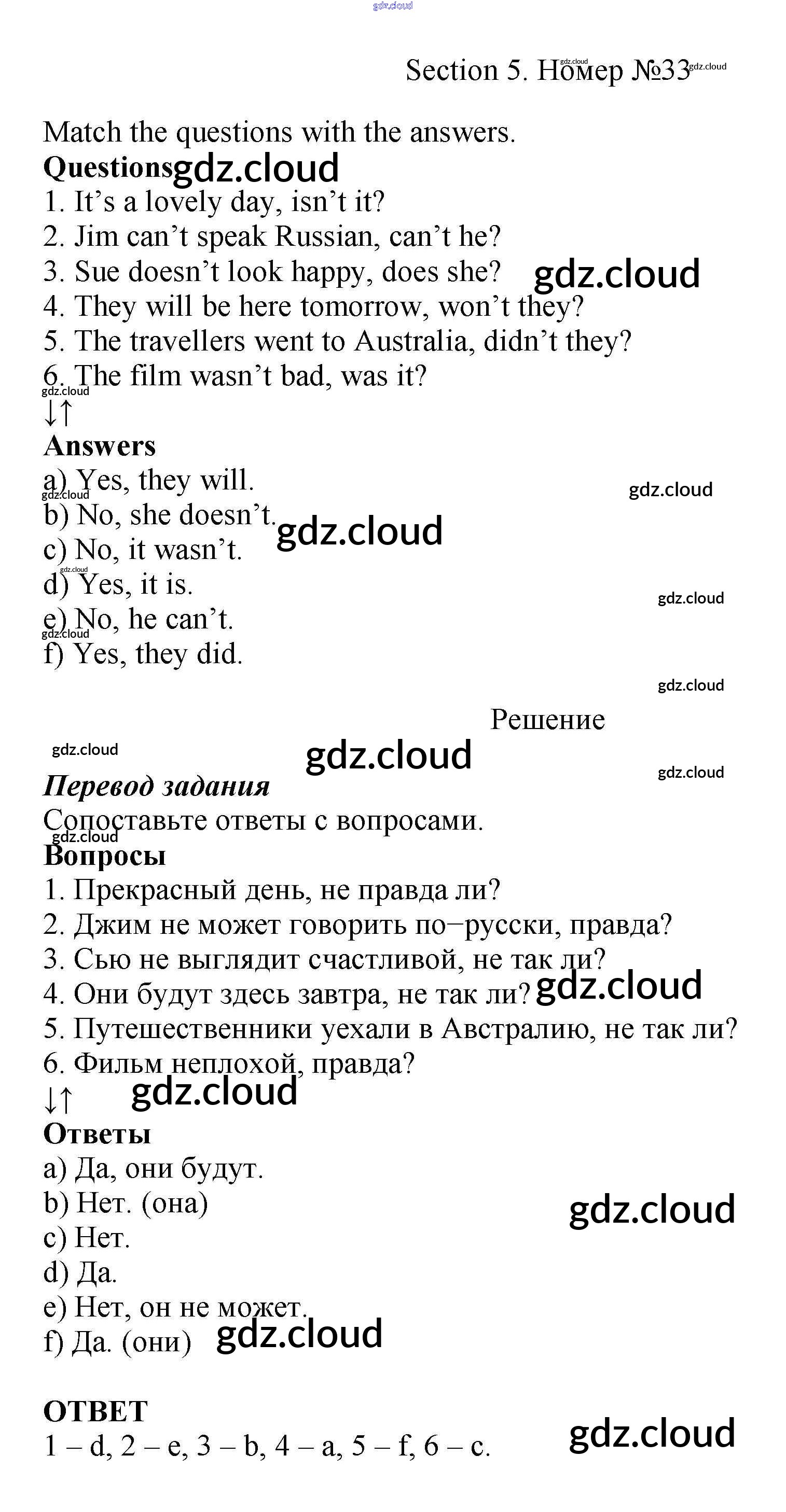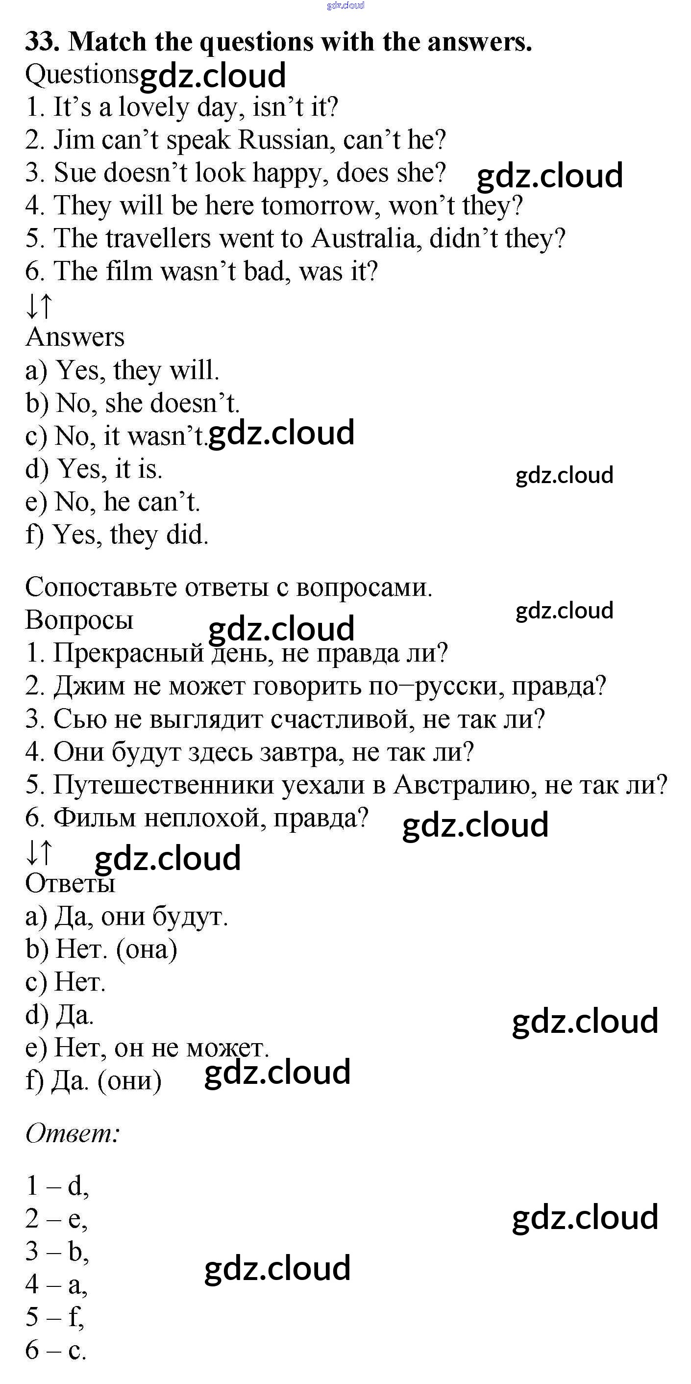 Ответ на задание 33 Рабочая тетрадь Английский язык за 5 (пятый) класс Биболетова, Денисенко, Трубанева Enjoy English 2019, 2015