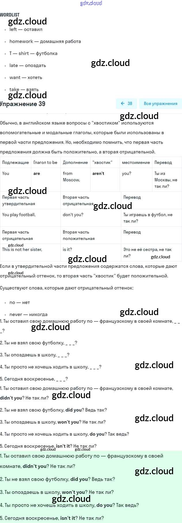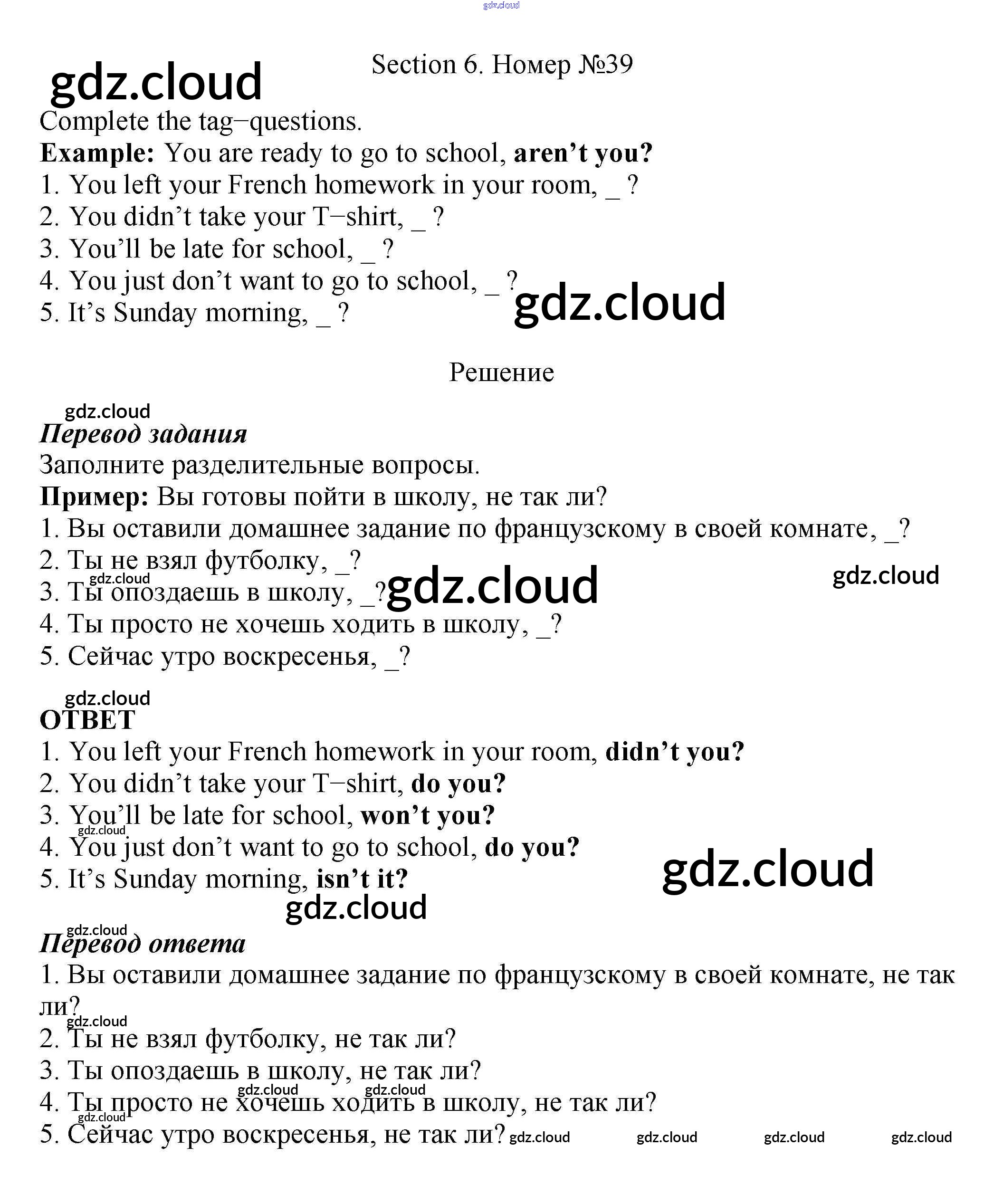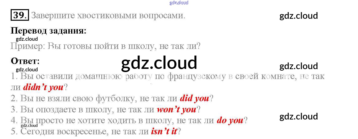 Ответ на задание 39 Рабочая тетрадь Английский язык за 5 (пятый) класс Биболетова, Денисенко, Трубанева Enjoy English 2019, 2015