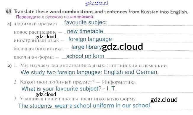Ответ на задание 43 Рабочая тетрадь Английский язык за 5 (пятый) класс Биболетова, Денисенко, Трубанева Enjoy English 2019, 2015