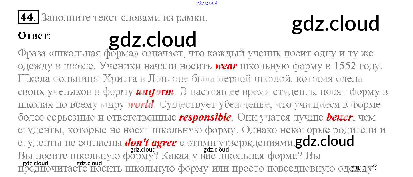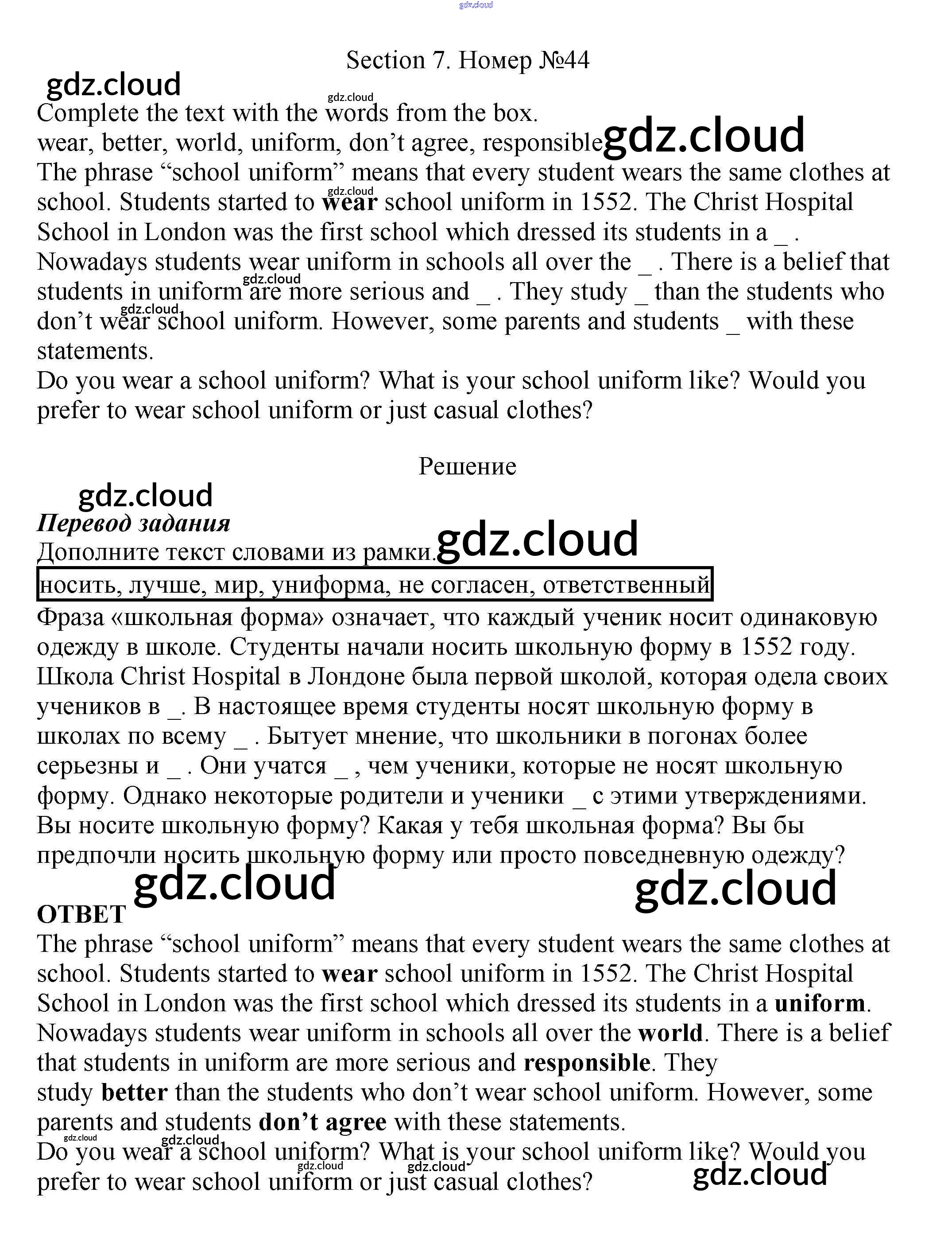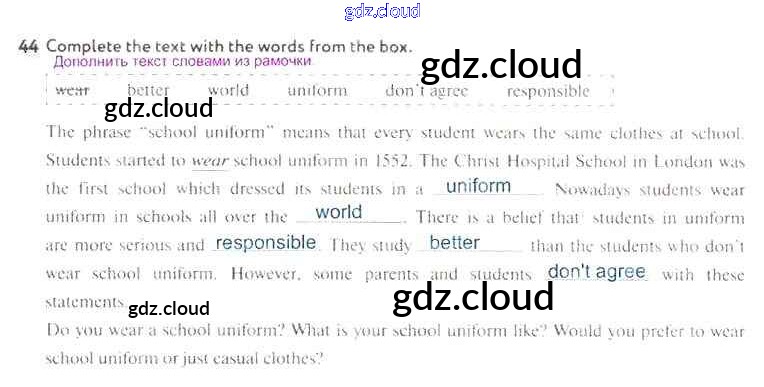 Ответ на задание 44 Рабочая тетрадь Английский язык за 5 (пятый) класс Биболетова, Денисенко, Трубанева Enjoy English 2019, 2015