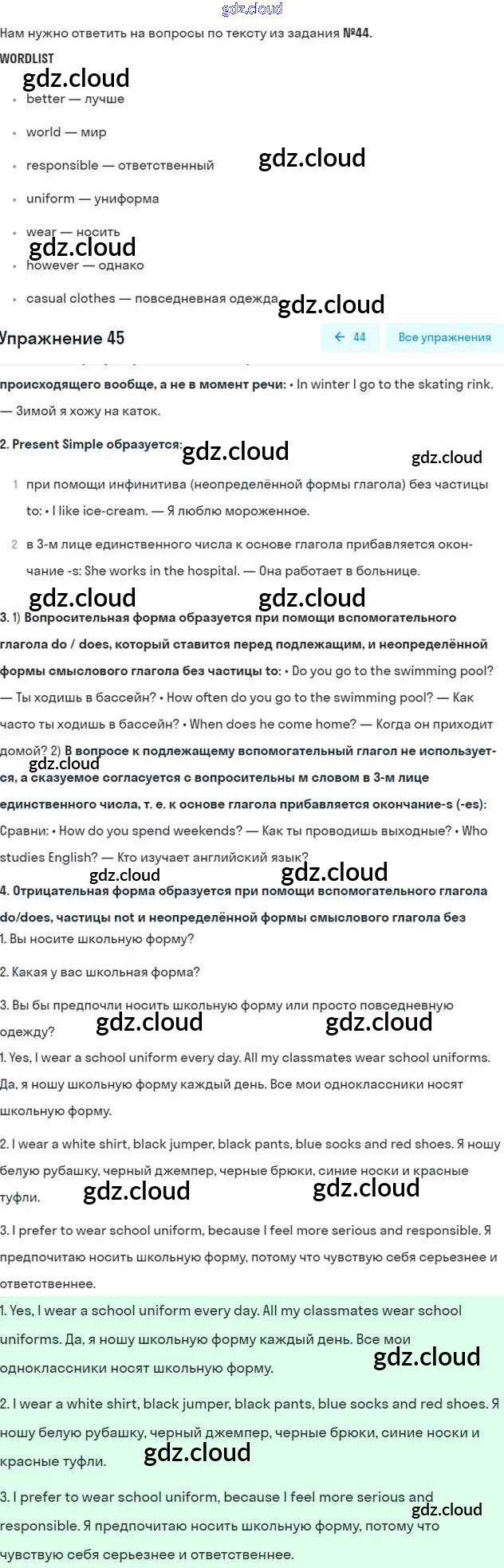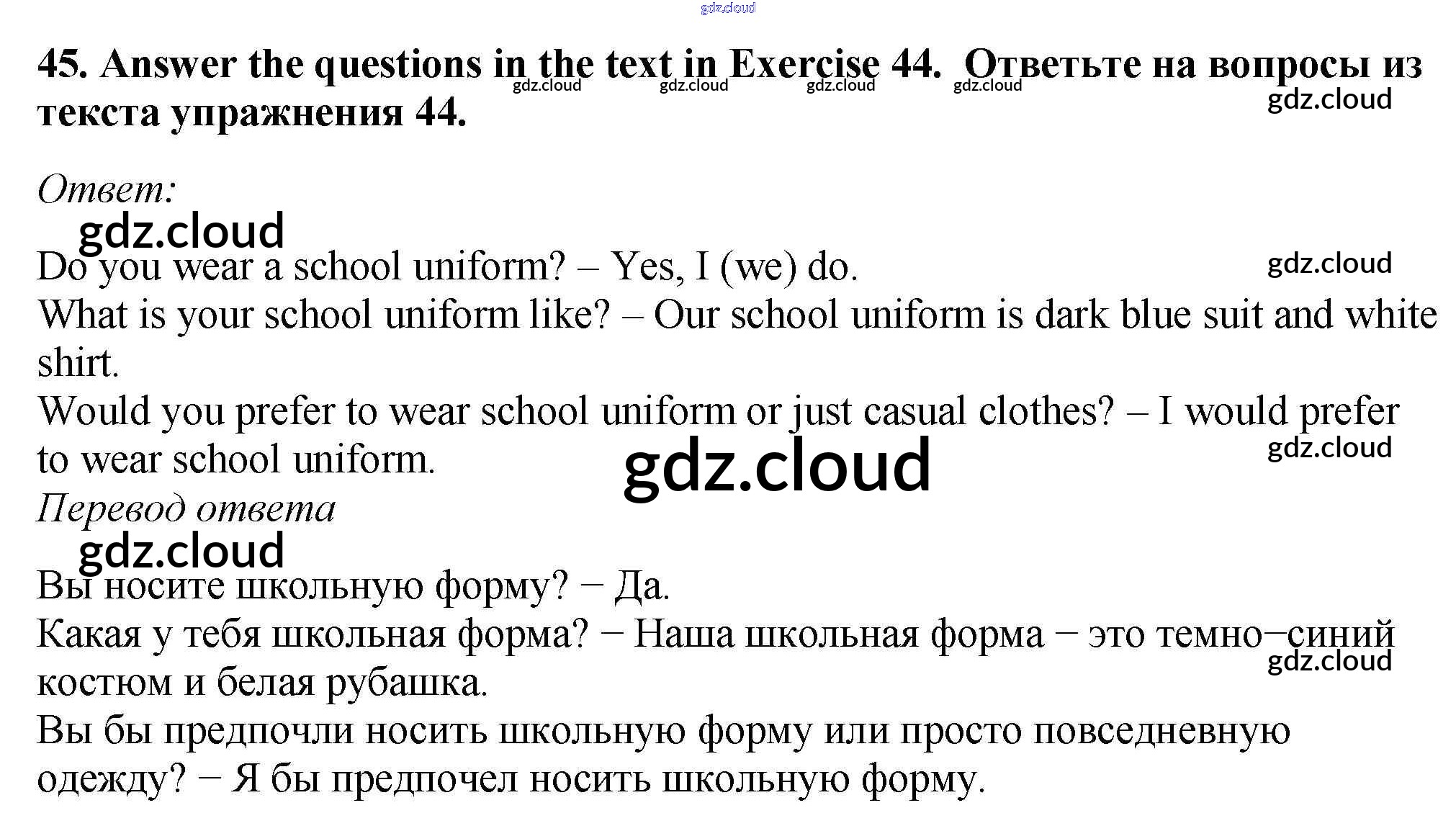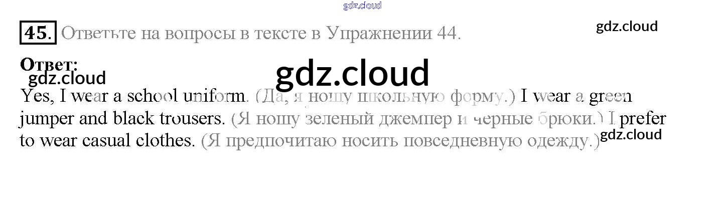 Ответ на задание 45 Рабочая тетрадь Английский язык за 5 (пятый) класс Биболетова, Денисенко, Трубанева Enjoy English 2019, 2015