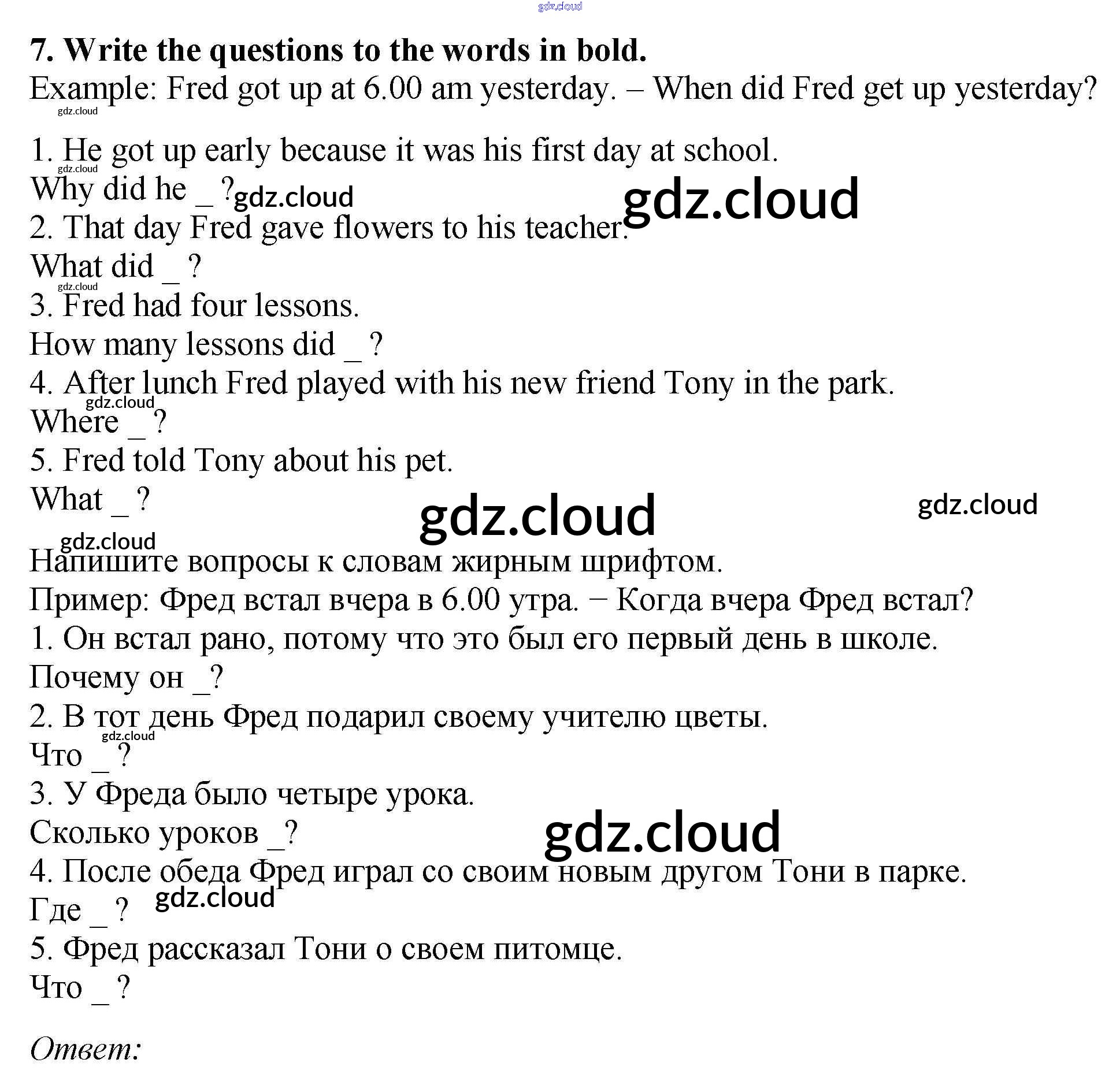 Ответ на задание 7 Рабочая тетрадь Английский язык за 5 (пятый) класс Биболетова, Денисенко, Трубанева Enjoy English 2019, 2015