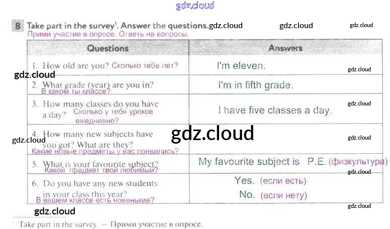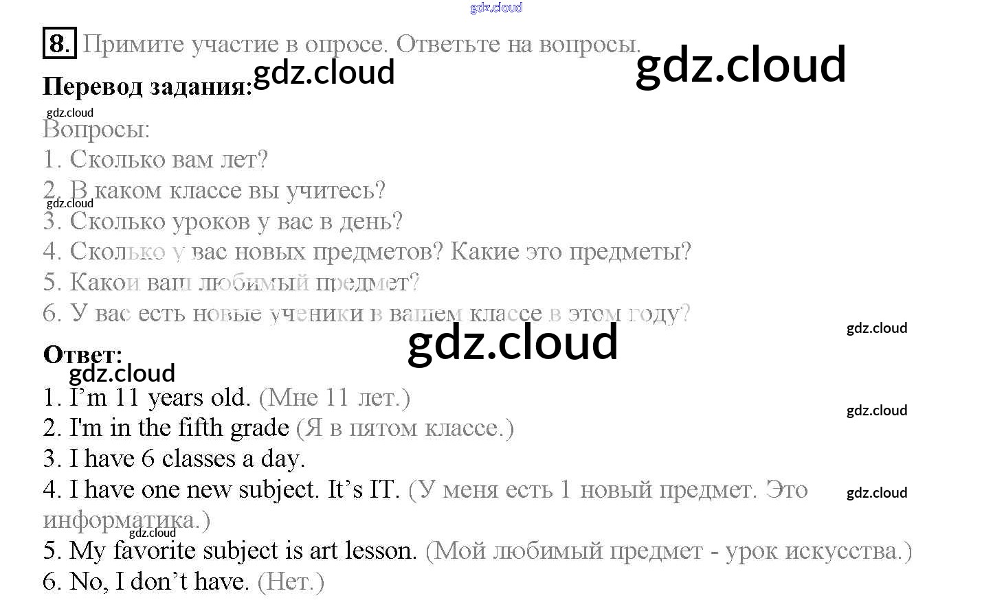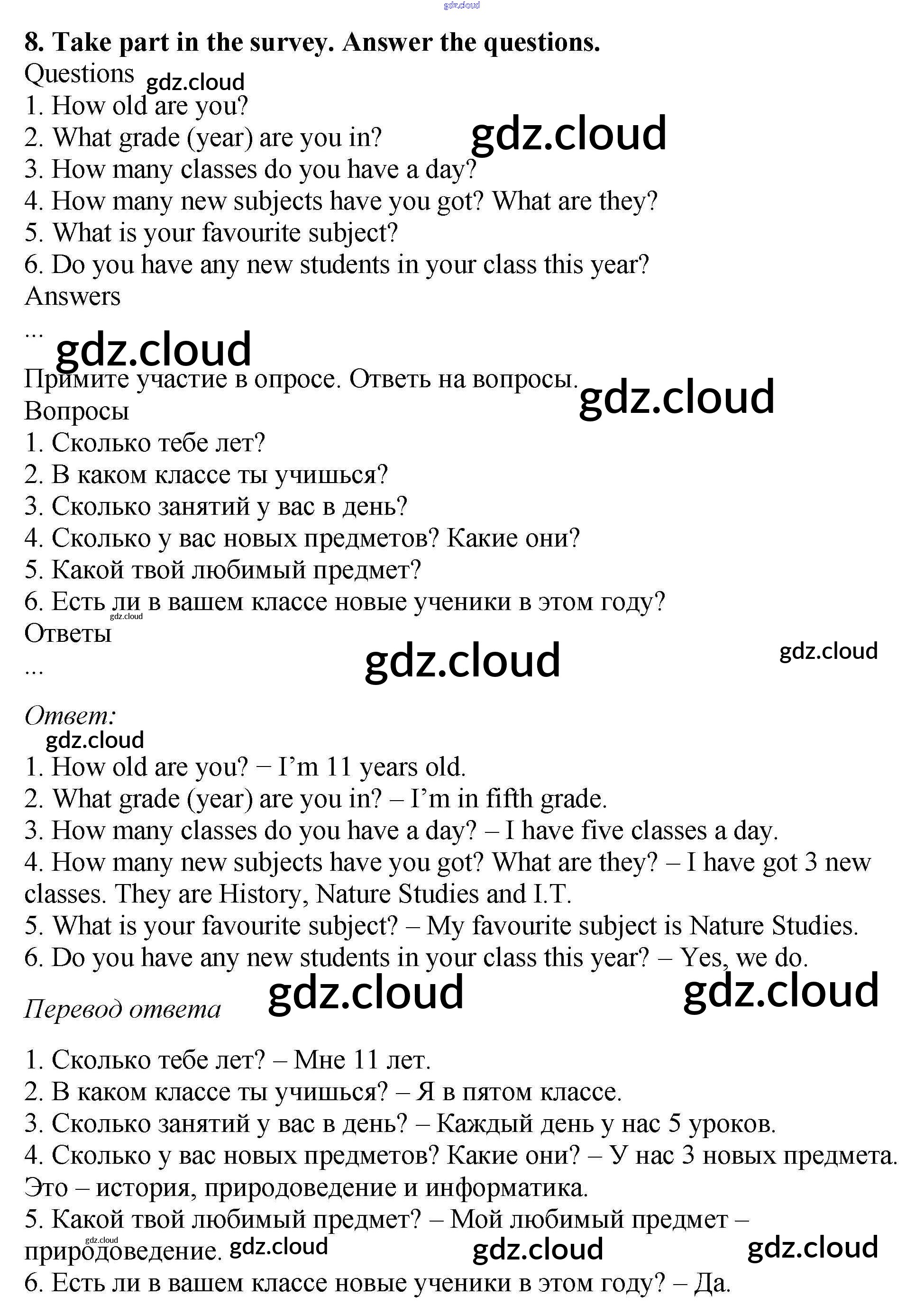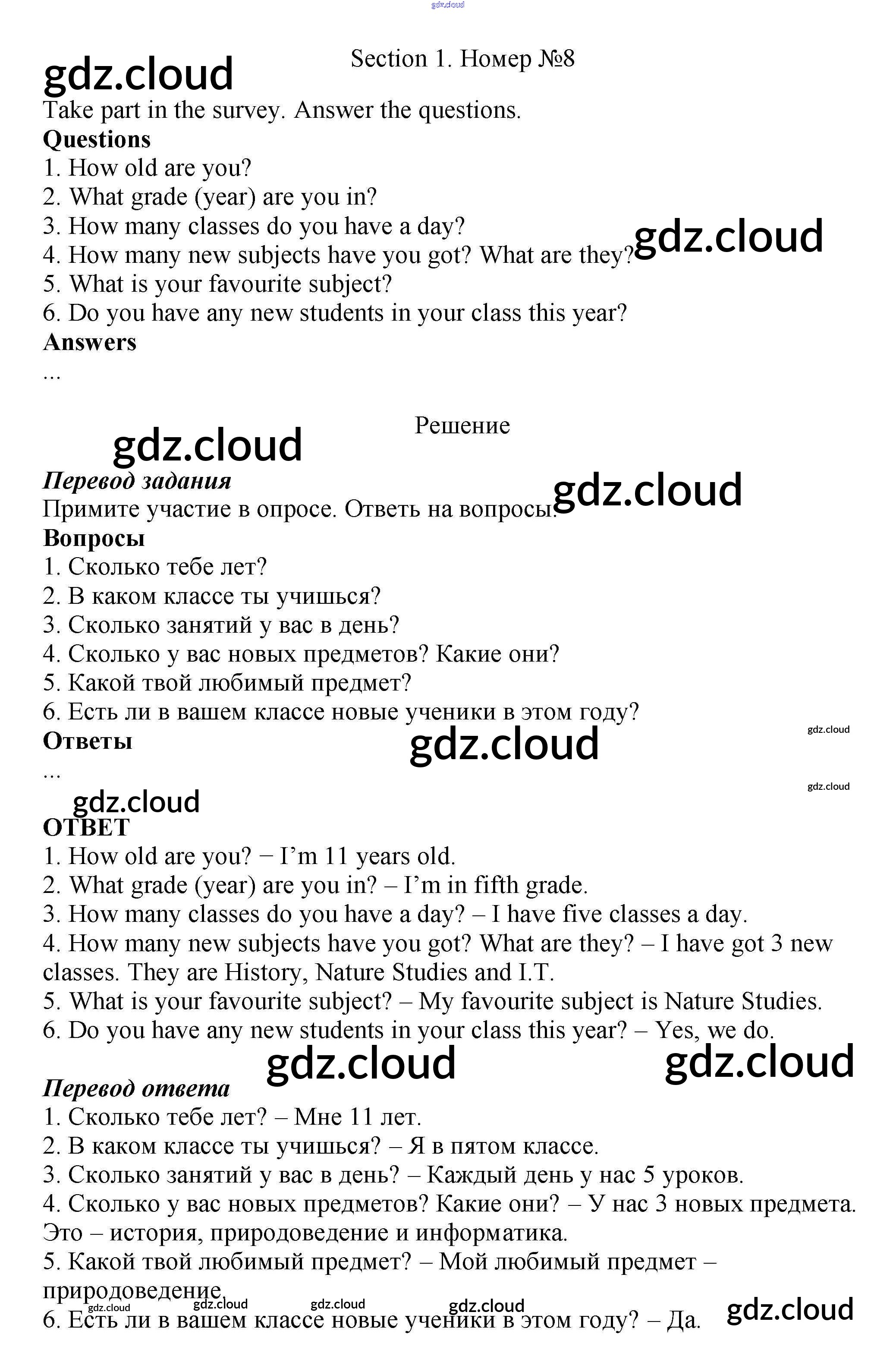 Ответ на задание 8 Рабочая тетрадь Английский язык за 5 (пятый) класс Биболетова, Денисенко, Трубанева Enjoy English 2019, 2015