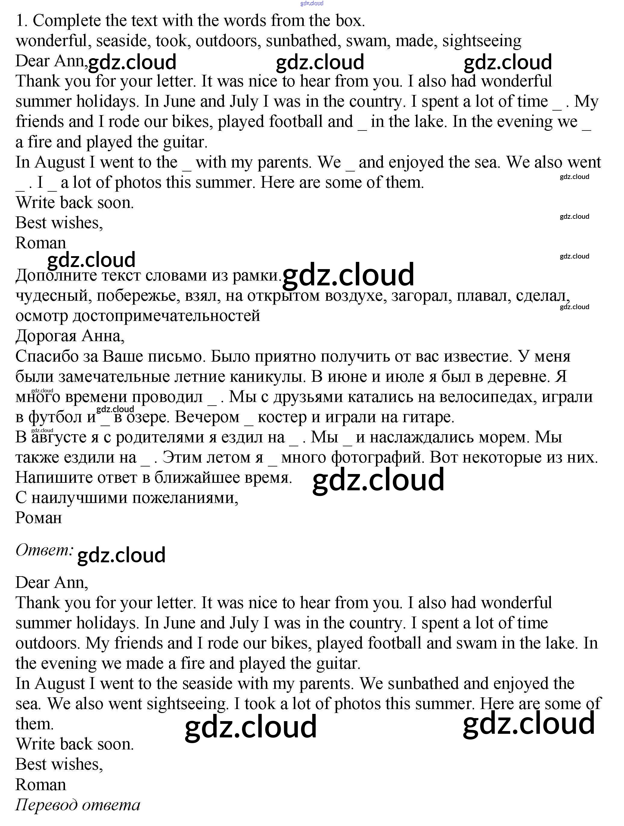 Ответ на задание 1 Рабочая тетрадь Английский язык за 5 (пятый) класс Биболетова, Денисенко, Трубанева Enjoy English 2019, 2015