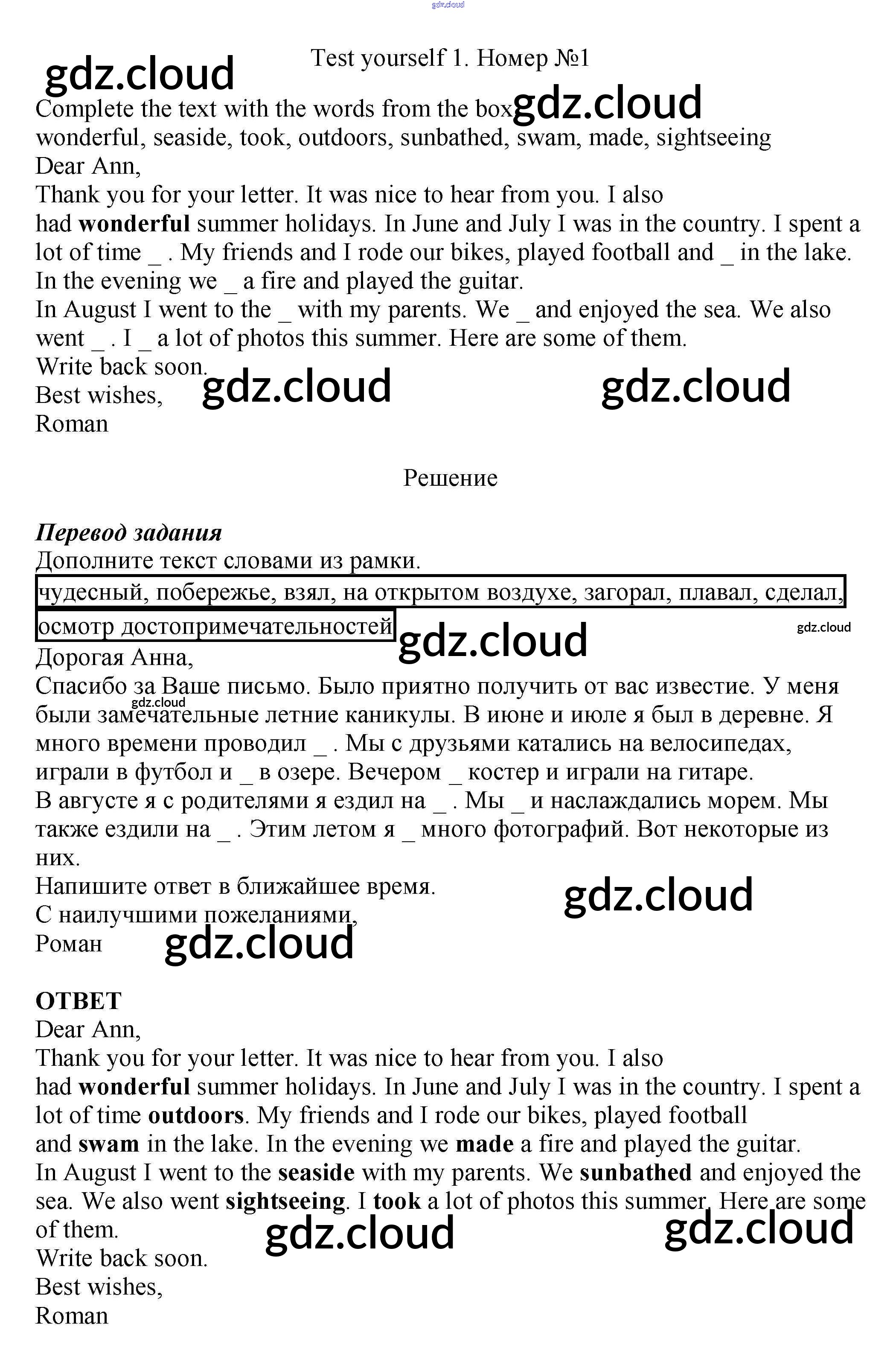 Test yourself 1 Ответы к Unit 1 по Английскому языку 5 класс Рабочая тетрадь Биболетова Enjoy English Дрофа, Титул