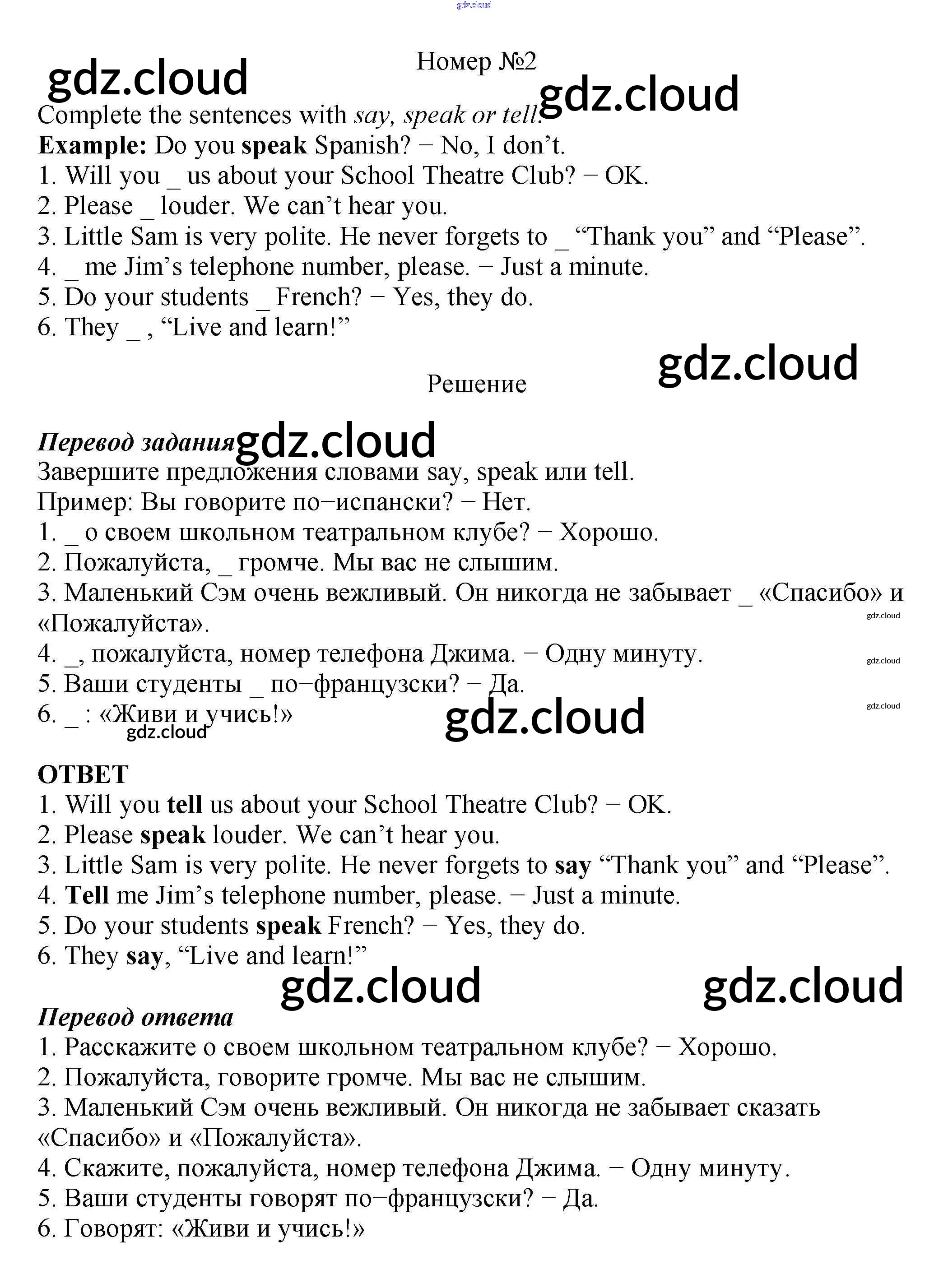 Ответ на задание 2 Рабочая тетрадь Английский язык за 5 (пятый) класс Биболетова, Денисенко, Трубанева Enjoy English 2019, 2015
