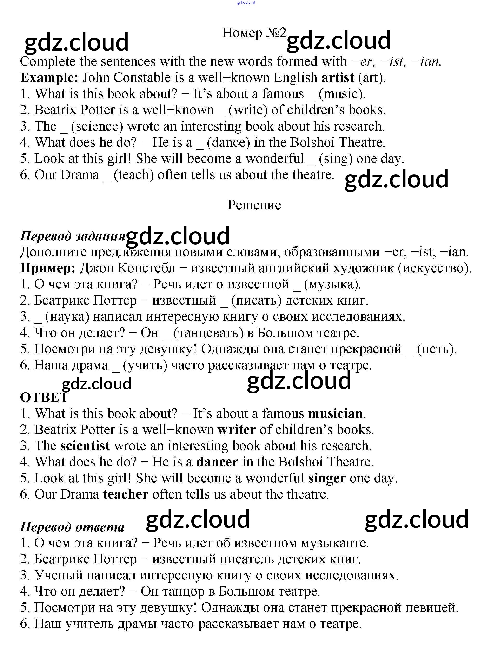 Ответ на задание 2 Рабочая тетрадь Английский язык за 5 (пятый) класс Биболетова, Денисенко, Трубанева Enjoy English 2019, 2015