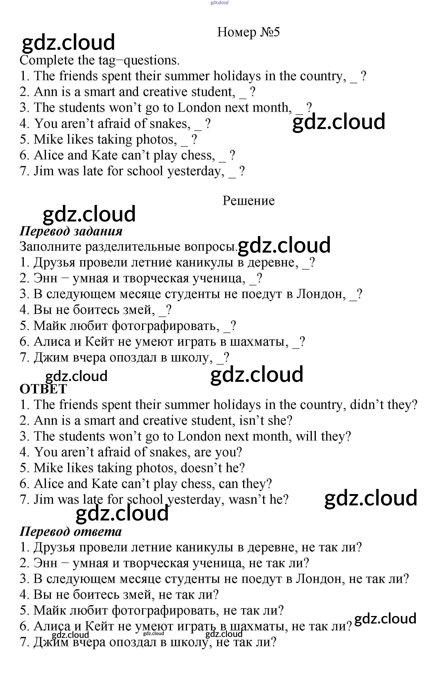 Ответ на задание 5 Рабочая тетрадь Английский язык за 5 (пятый) класс Биболетова, Денисенко, Трубанева Enjoy English 2019, 2015