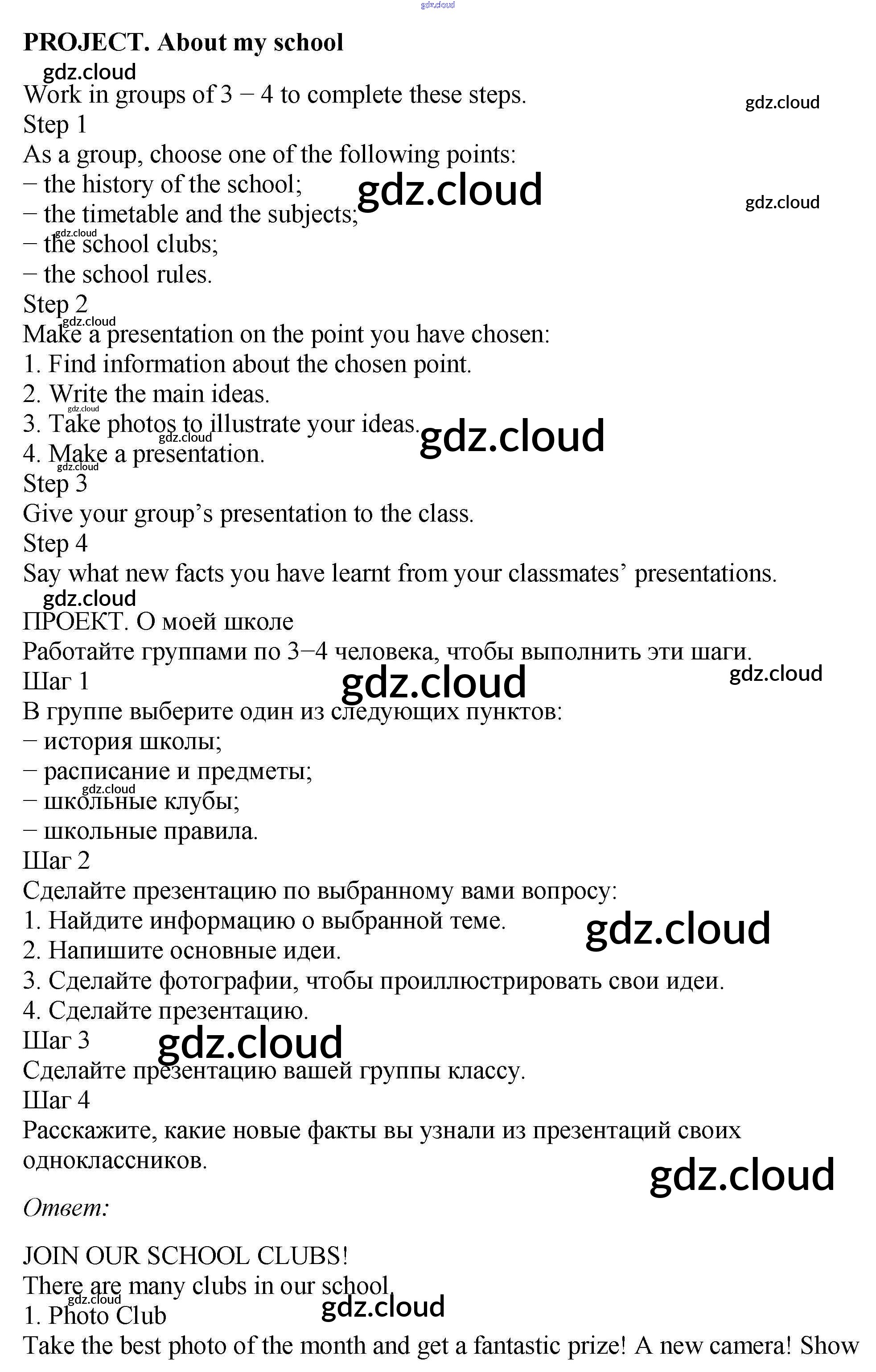 Project. About my school Ответы к Unit 1 по Английскому языку 5 класс Рабочая тетрадь Биболетова Enjoy English Дрофа, Титул