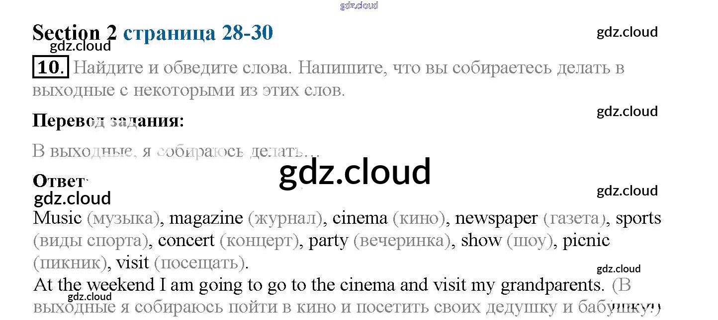 Ответ на задание 10 Рабочая тетрадь Английский язык за 5 (пятый) класс Биболетова, Денисенко, Трубанева Enjoy English 2019, 2015