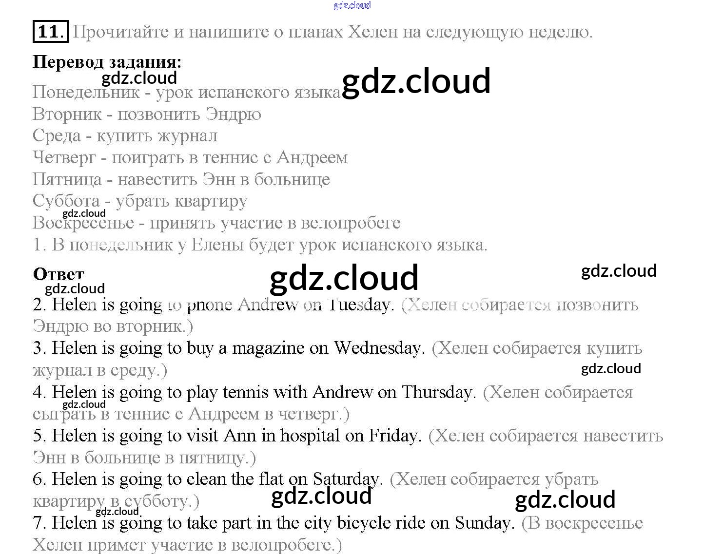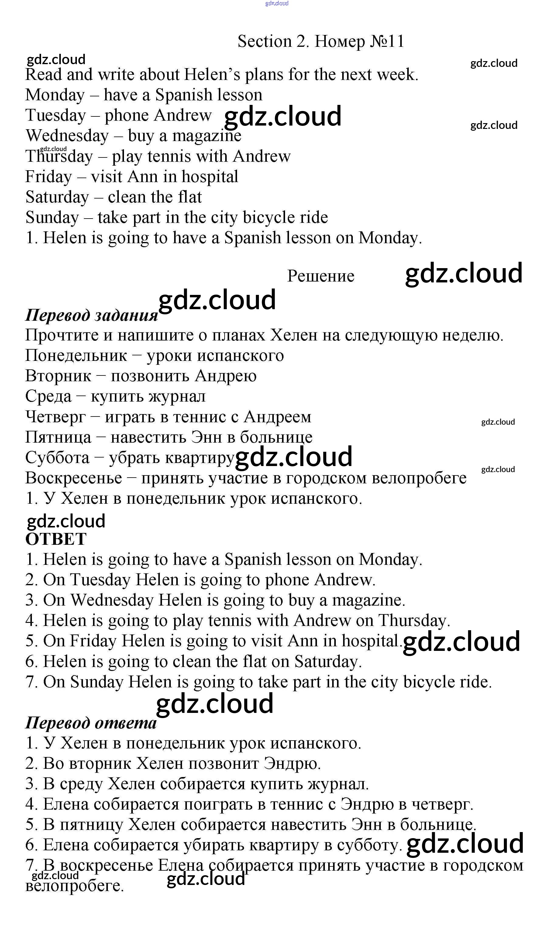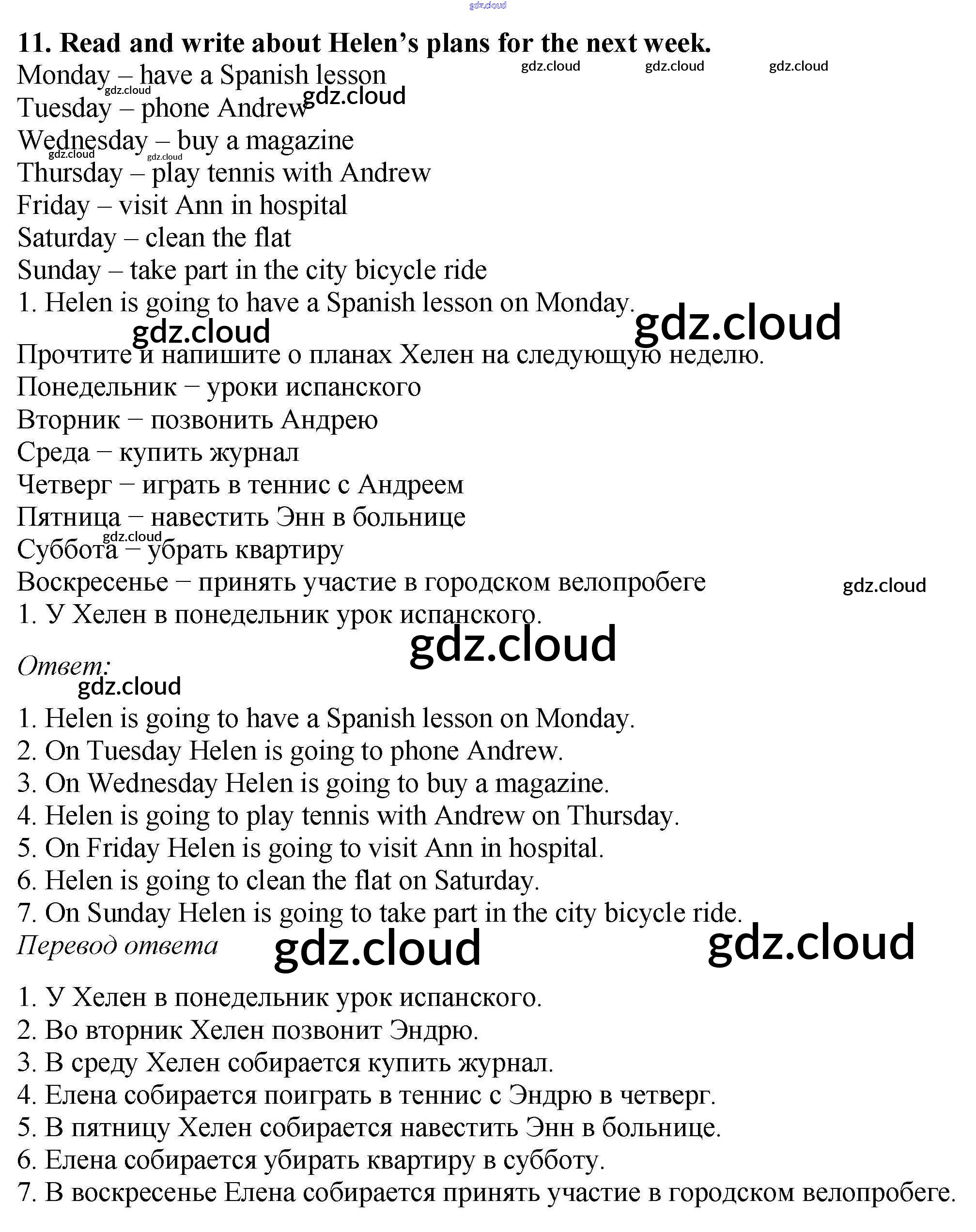 Ответ на задание 11 Рабочая тетрадь Английский язык за 5 (пятый) класс Биболетова, Денисенко, Трубанева Enjoy English 2019, 2015