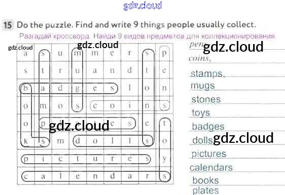 Ответ на задание 15 Рабочая тетрадь Английский язык за 5 (пятый) класс Биболетова, Денисенко, Трубанева Enjoy English 2019, 2015