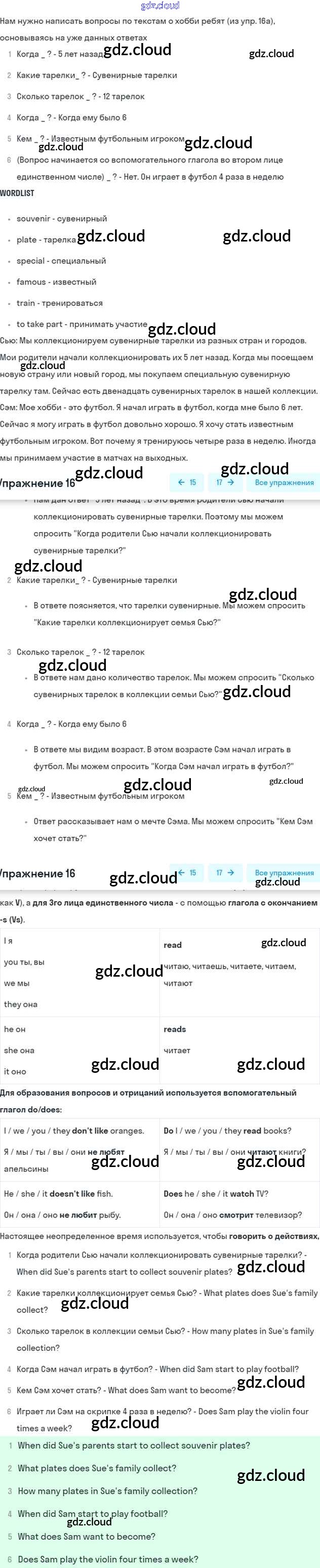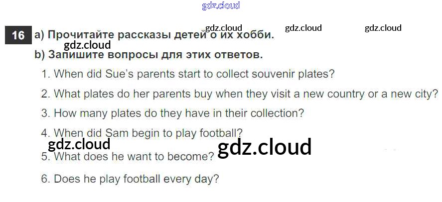 Ответ на задание 16 Рабочая тетрадь Английский язык за 5 (пятый) класс Биболетова, Денисенко, Трубанева Enjoy English 2019, 2015