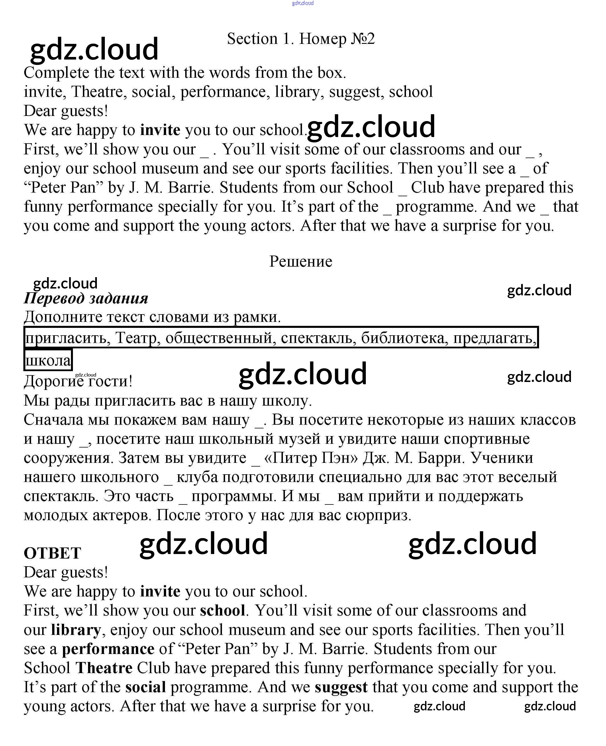 Ответ на задание 2 Рабочая тетрадь Английский язык за 5 (пятый) класс Биболетова, Денисенко, Трубанева Enjoy English 2019, 2015