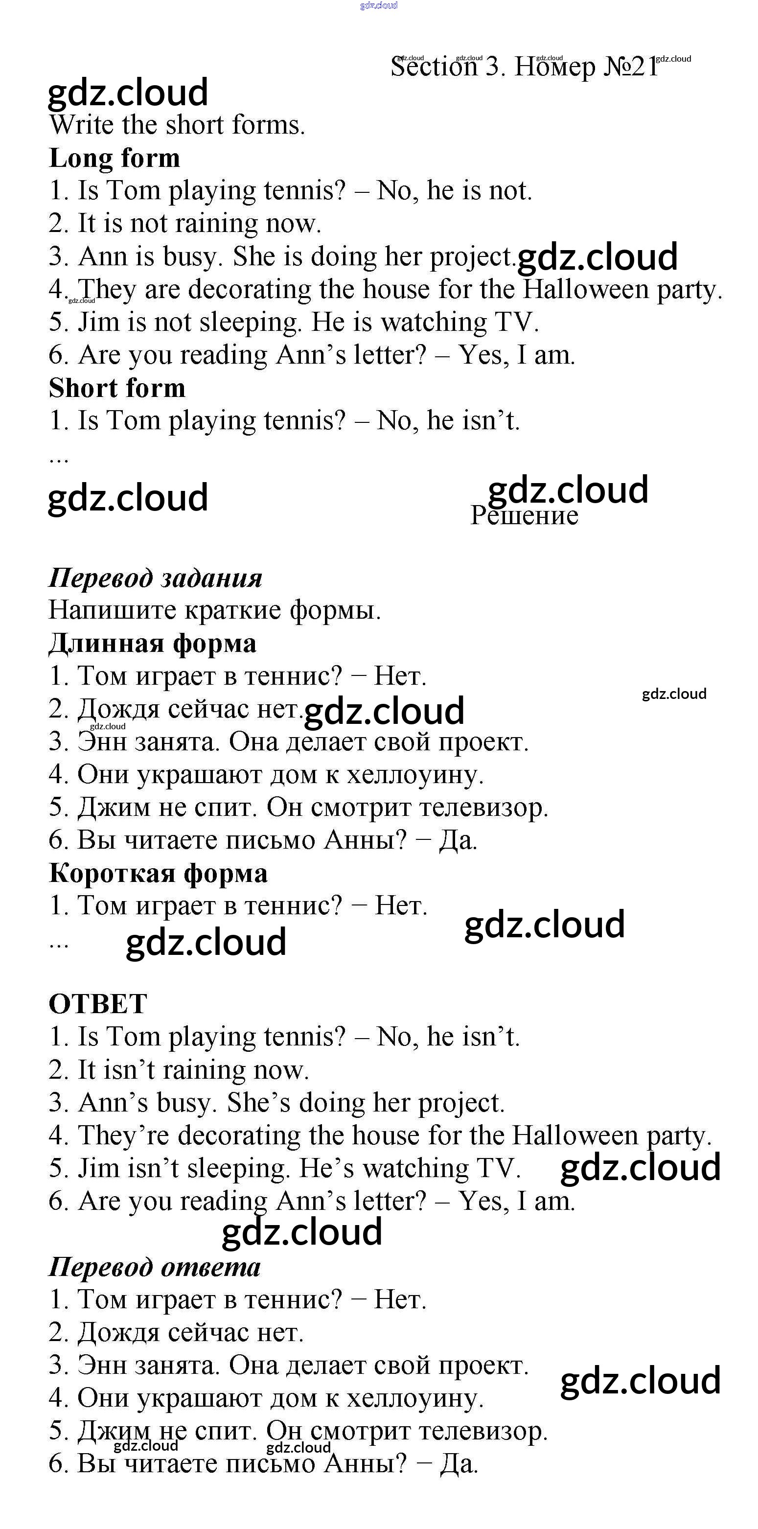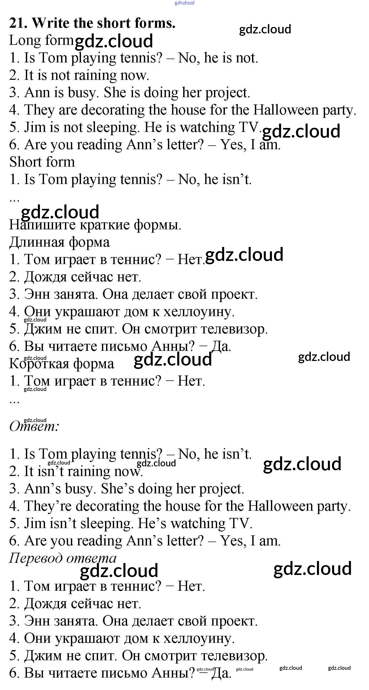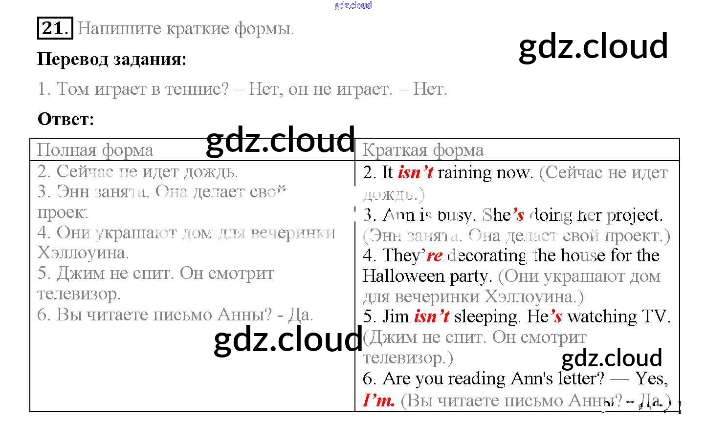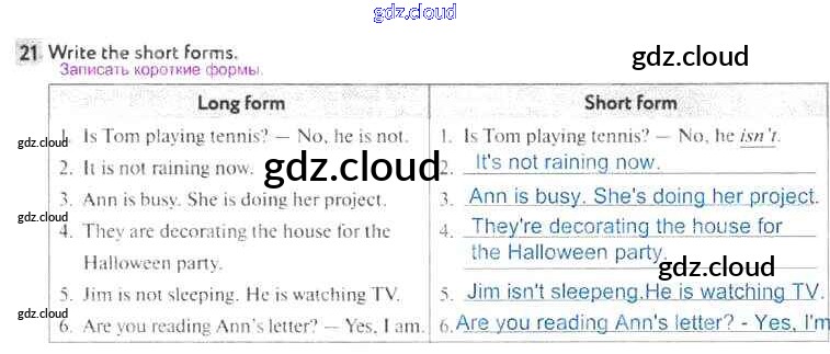Ответ на задание 21 Рабочая тетрадь Английский язык за 5 (пятый) класс Биболетова, Денисенко, Трубанева Enjoy English 2019, 2015
