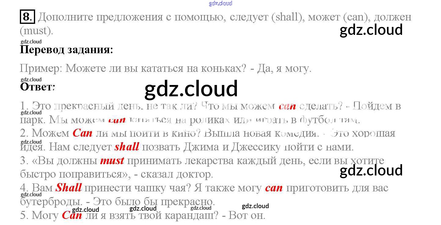 Ответ на задание 8 Рабочая тетрадь Английский язык за 5 (пятый) класс Биболетова, Денисенко, Трубанева Enjoy English 2019, 2015