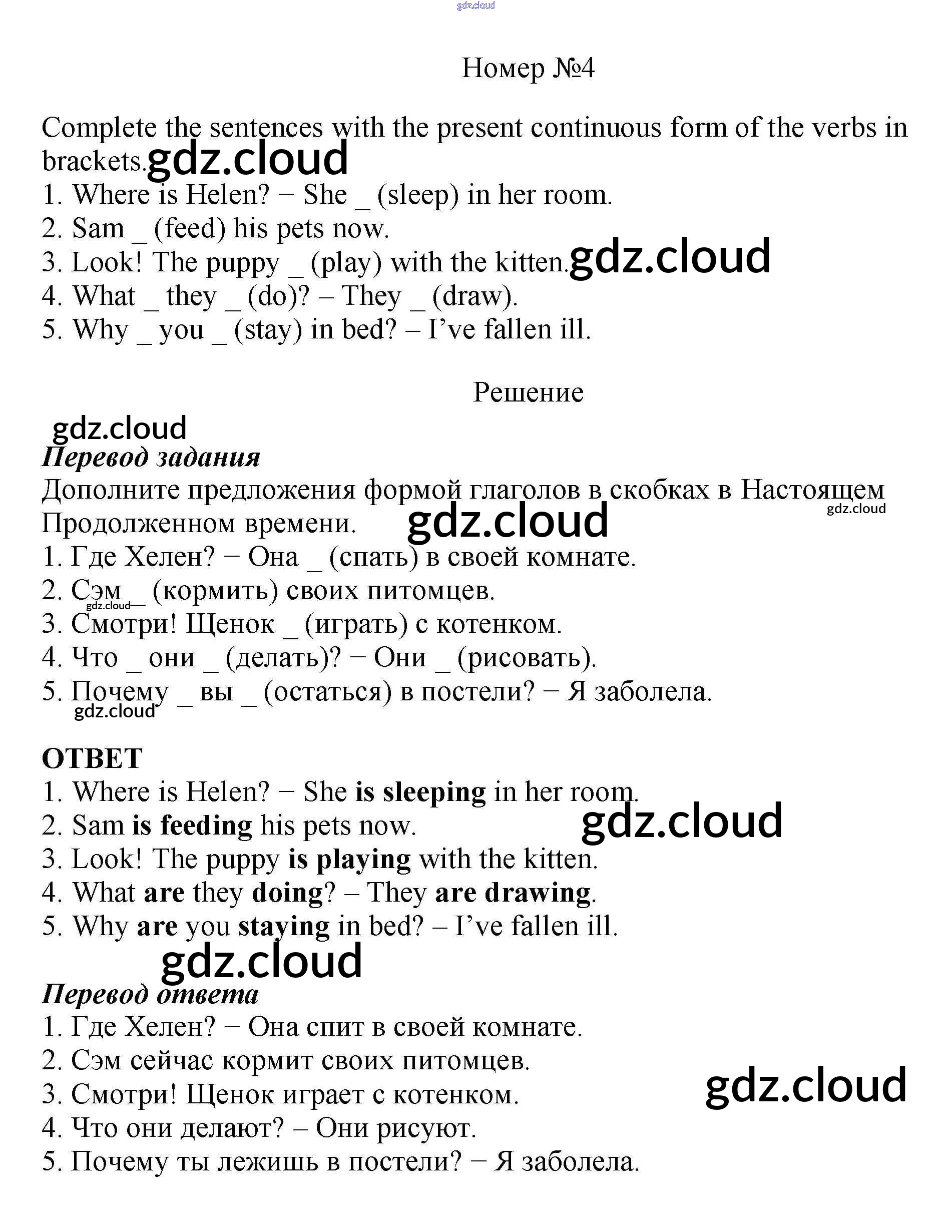 Ответ на задание 4 Рабочая тетрадь Английский язык за 5 (пятый) класс Биболетова, Денисенко, Трубанева Enjoy English 2019, 2015