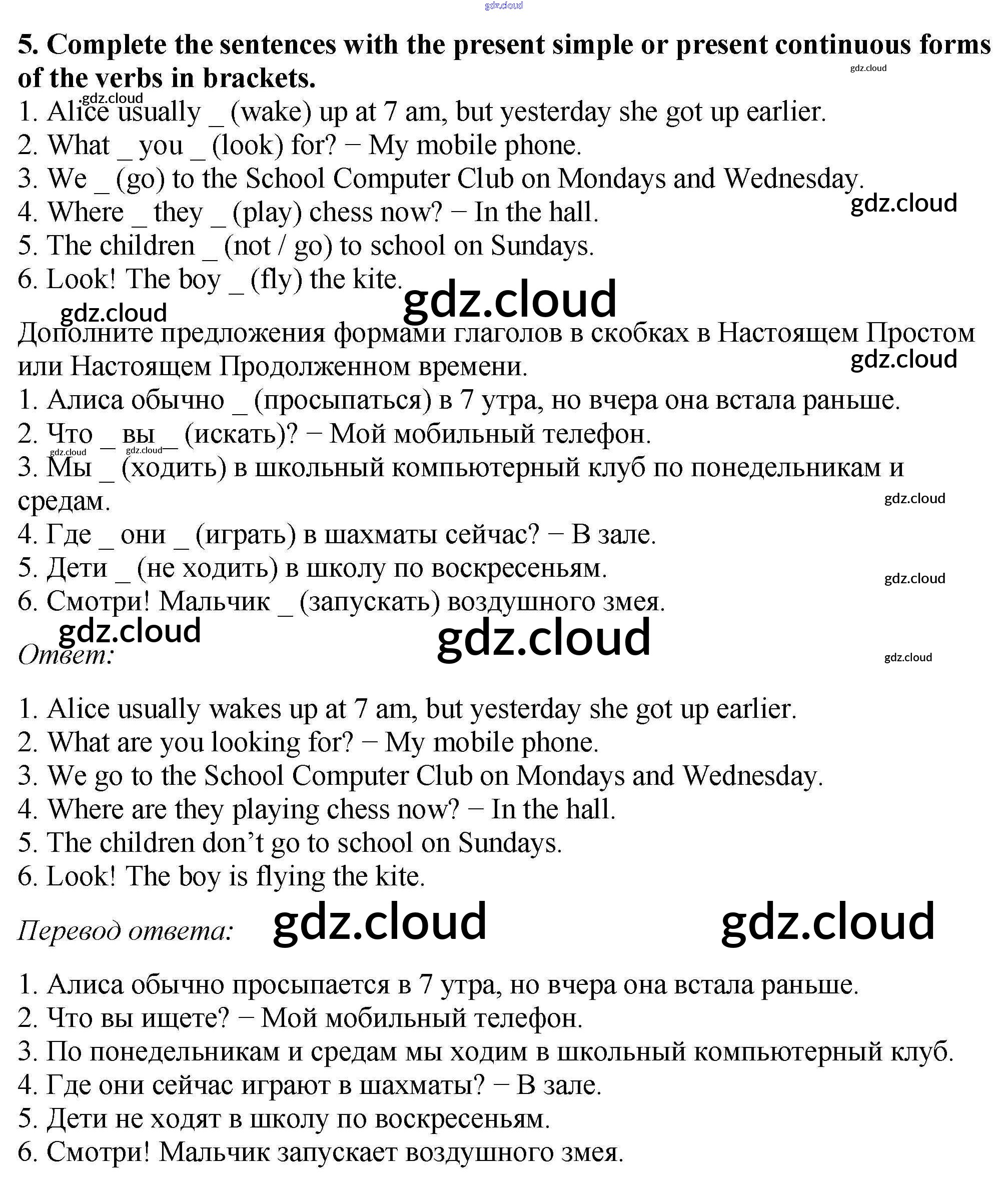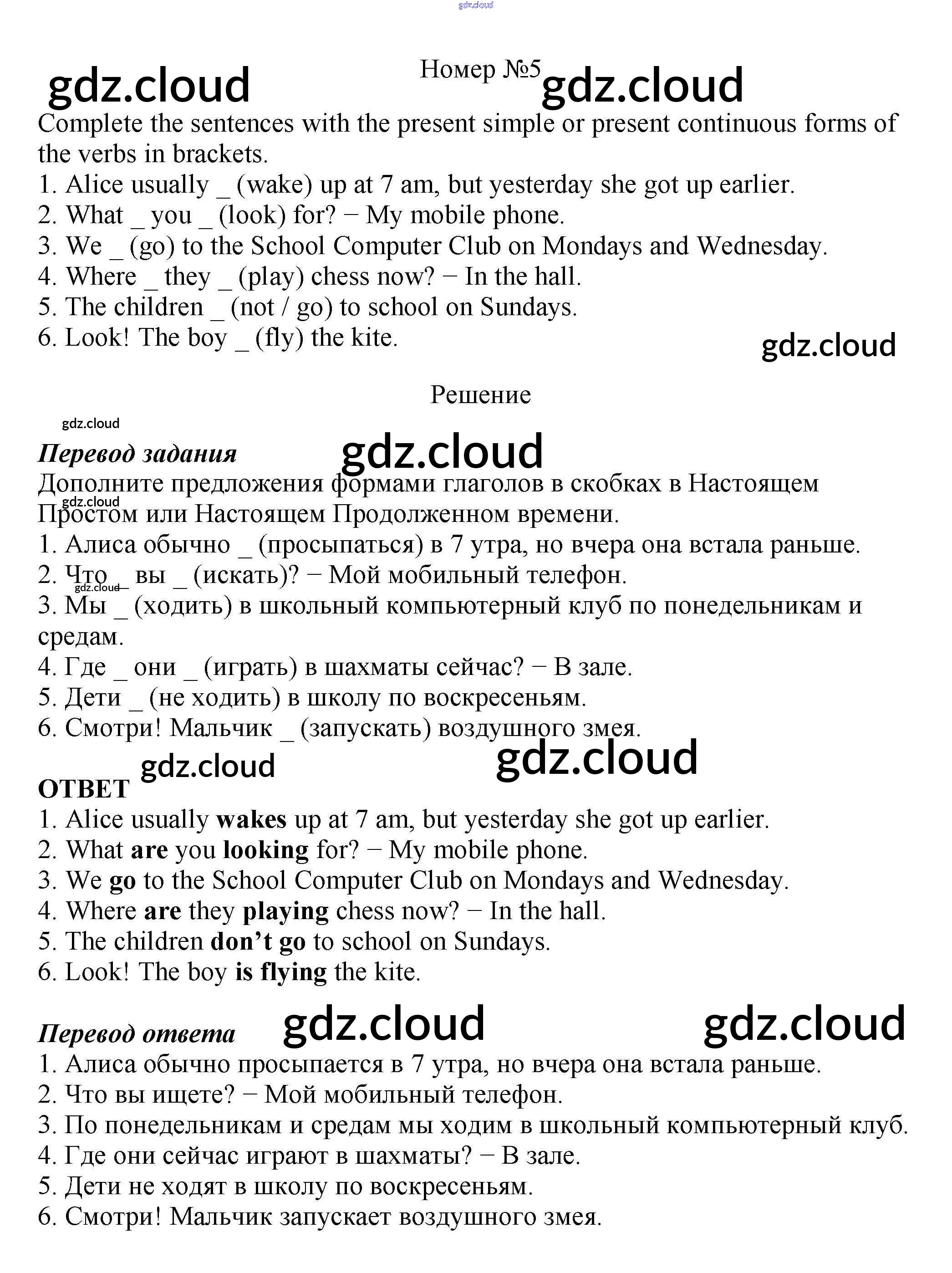 Ответ на задание 5 Рабочая тетрадь Английский язык за 5 (пятый) класс Биболетова, Денисенко, Трубанева Enjoy English 2019, 2015