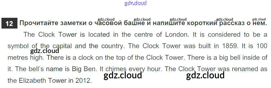 Ответ на задание 12 Рабочая тетрадь Английский язык за 5 (пятый) класс Биболетова, Денисенко, Трубанева Enjoy English 2019, 2015
