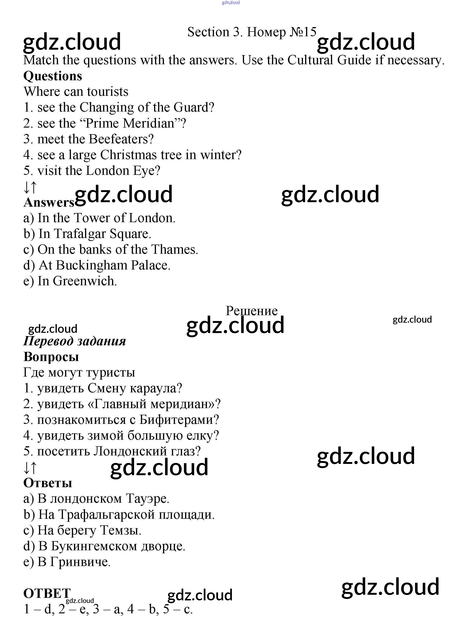 Ответ на задание 15 Рабочая тетрадь Английский язык за 5 (пятый) класс Биболетова, Денисенко, Трубанева Enjoy English 2019, 2015
