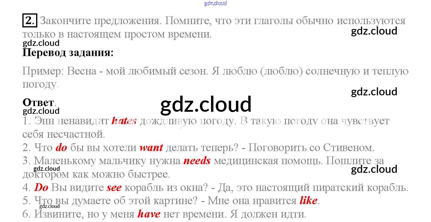 Ответ на задание 2 Рабочая тетрадь Английский язык за 5 (пятый) класс Биболетова, Денисенко, Трубанева Enjoy English 2019, 2015