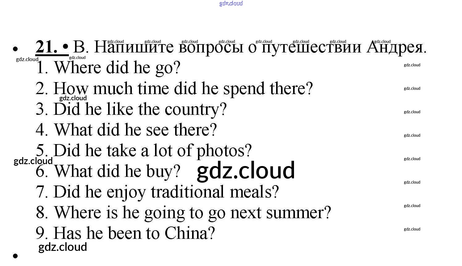 Ответ на задание 21 Рабочая тетрадь Английский язык за 5 (пятый) класс Биболетова, Денисенко, Трубанева Enjoy English 2019, 2015