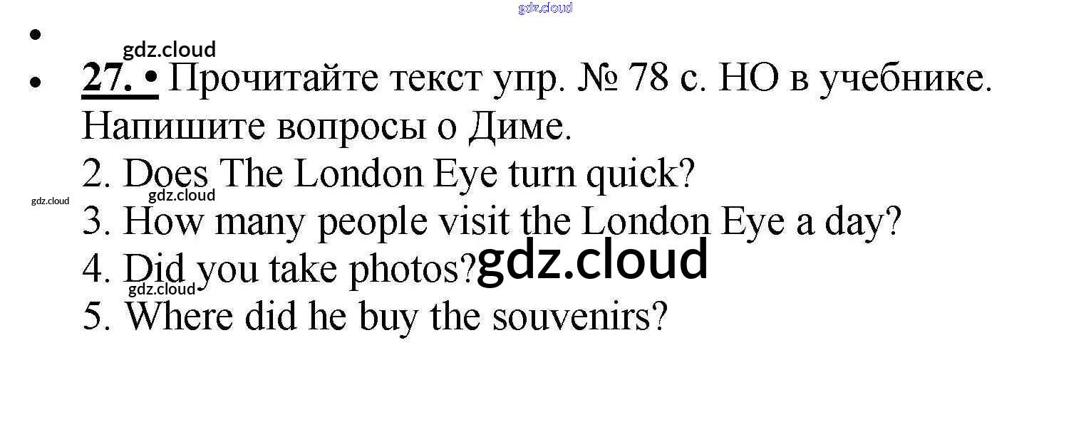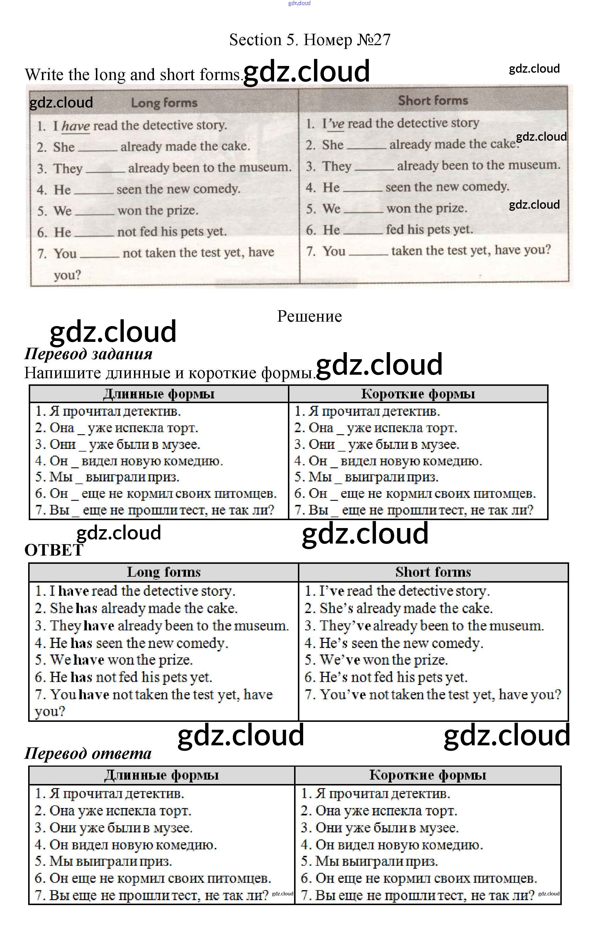 Ответ на задание 27 Рабочая тетрадь Английский язык за 5 (пятый) класс Биболетова, Денисенко, Трубанева Enjoy English 2019, 2015