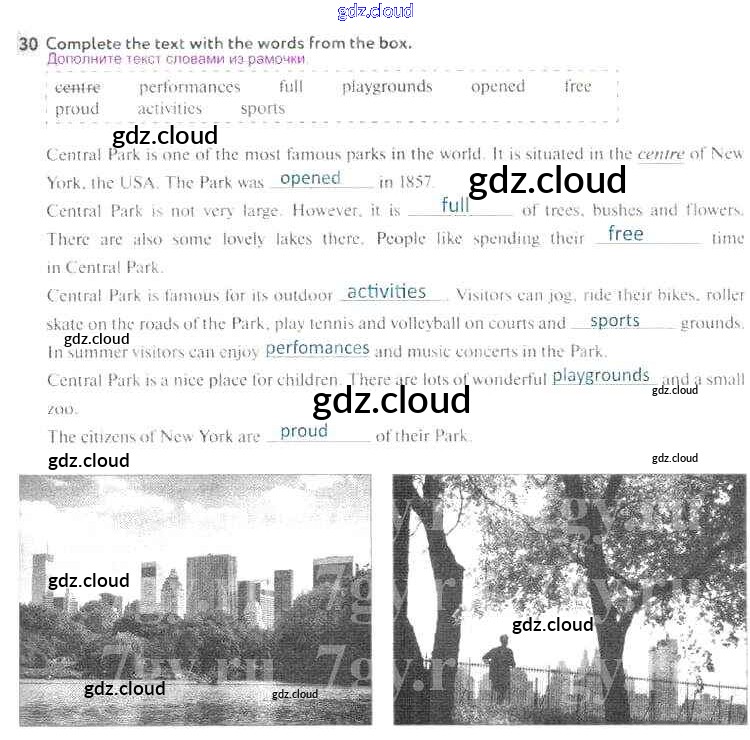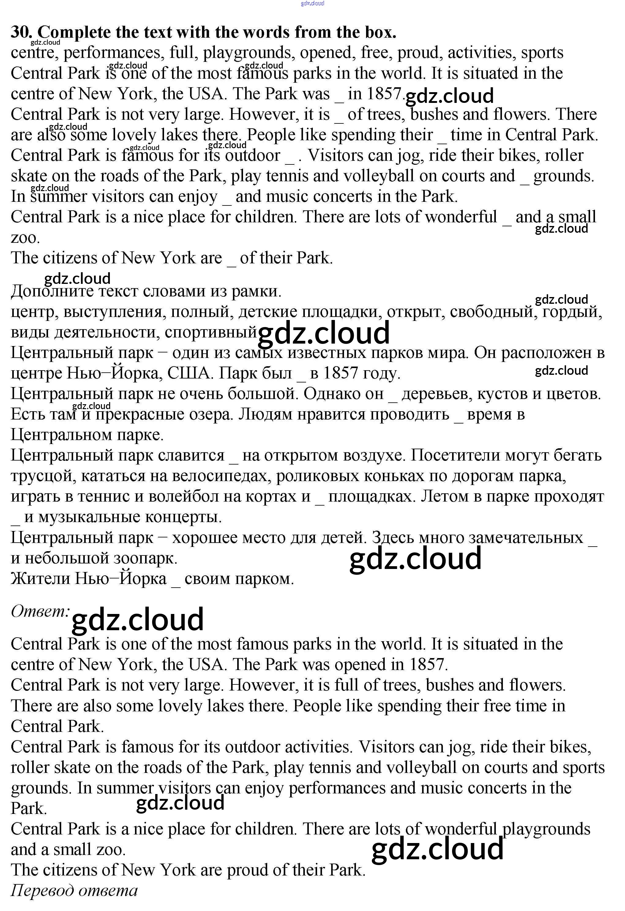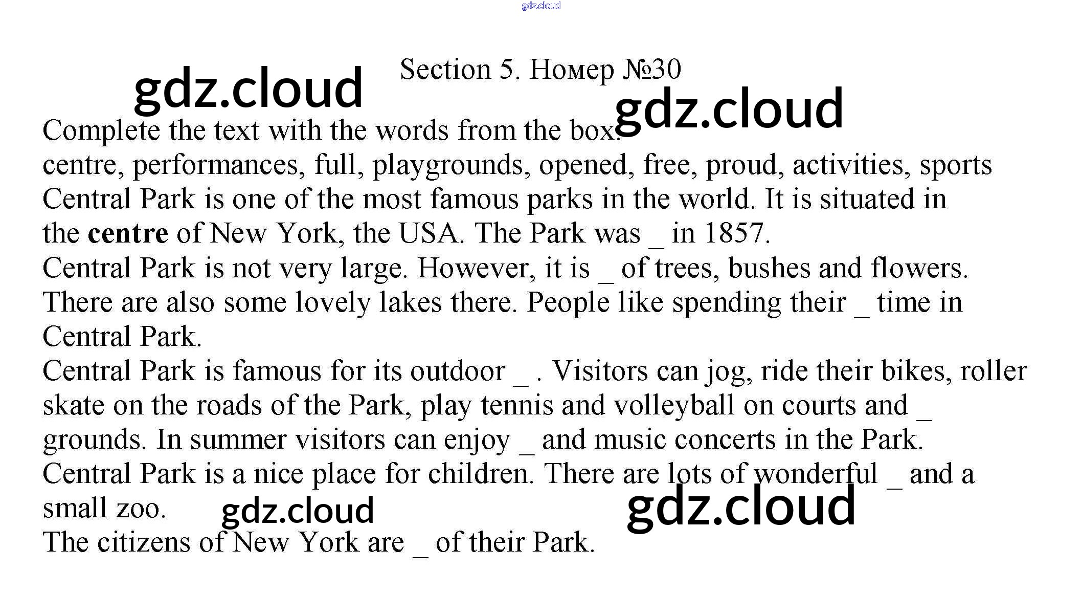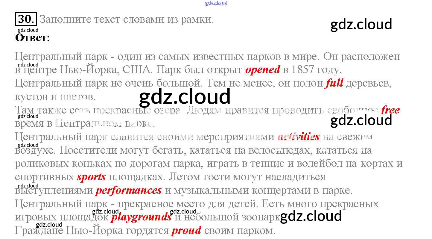 Ответ на задание 30 Рабочая тетрадь Английский язык за 5 (пятый) класс Биболетова, Денисенко, Трубанева Enjoy English 2019, 2015