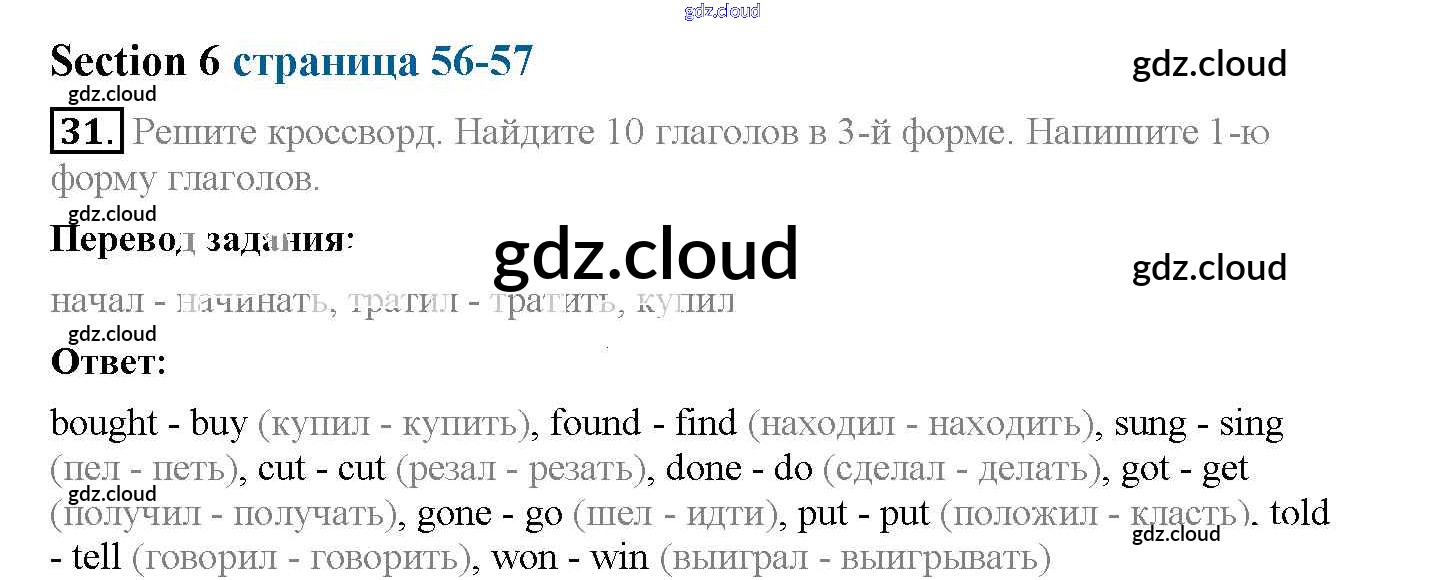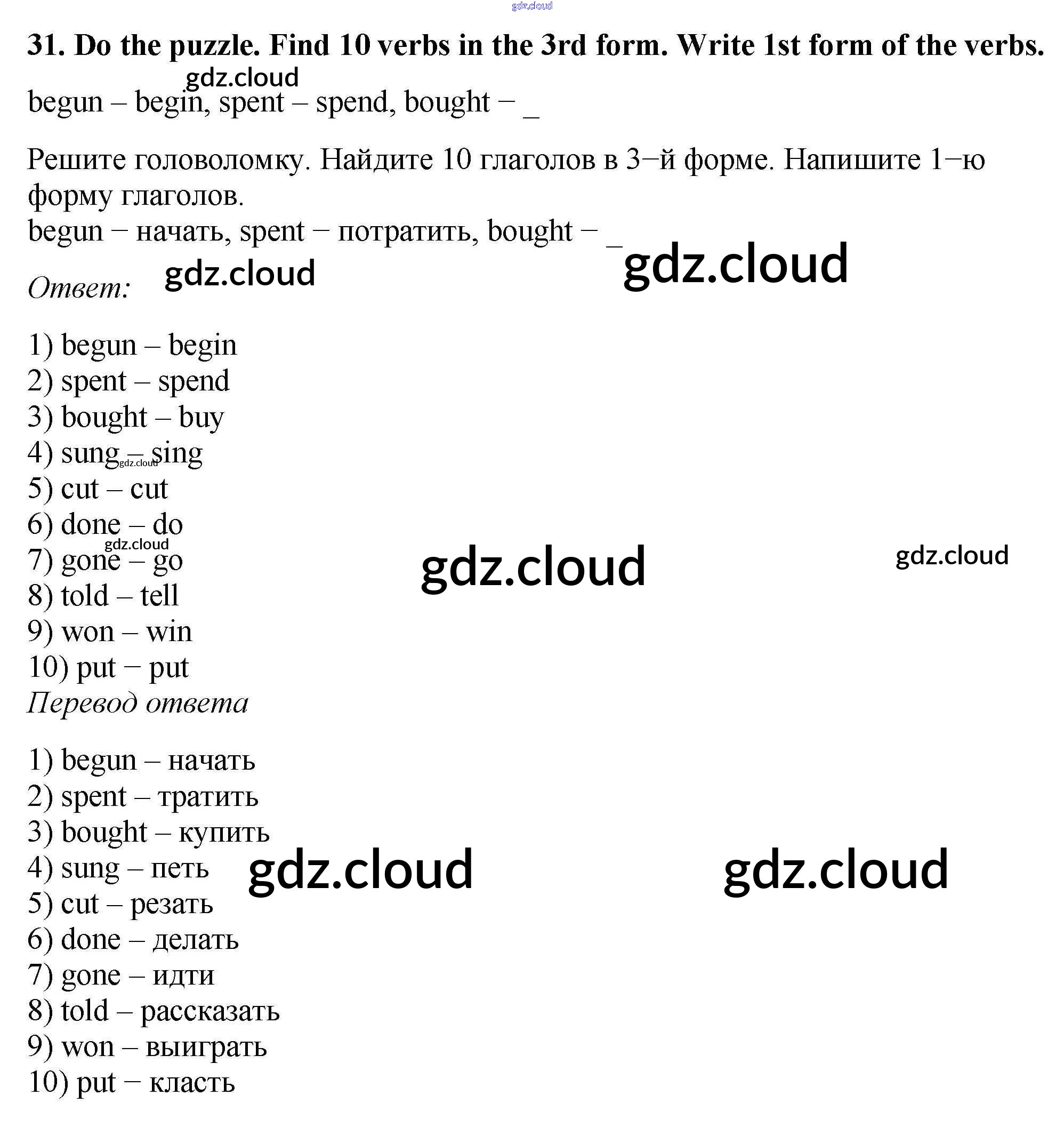 Ответ на задание 31 Рабочая тетрадь Английский язык за 5 (пятый) класс Биболетова, Денисенко, Трубанева Enjoy English 2019, 2015