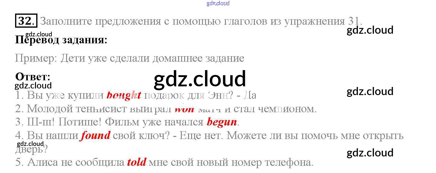 Ответ на задание 32 Рабочая тетрадь Английский язык за 5 (пятый) класс Биболетова, Денисенко, Трубанева Enjoy English 2019, 2015