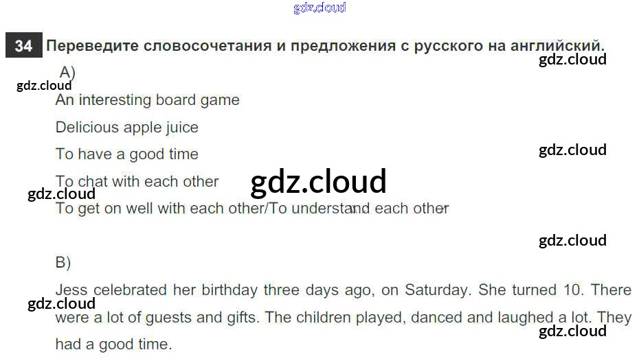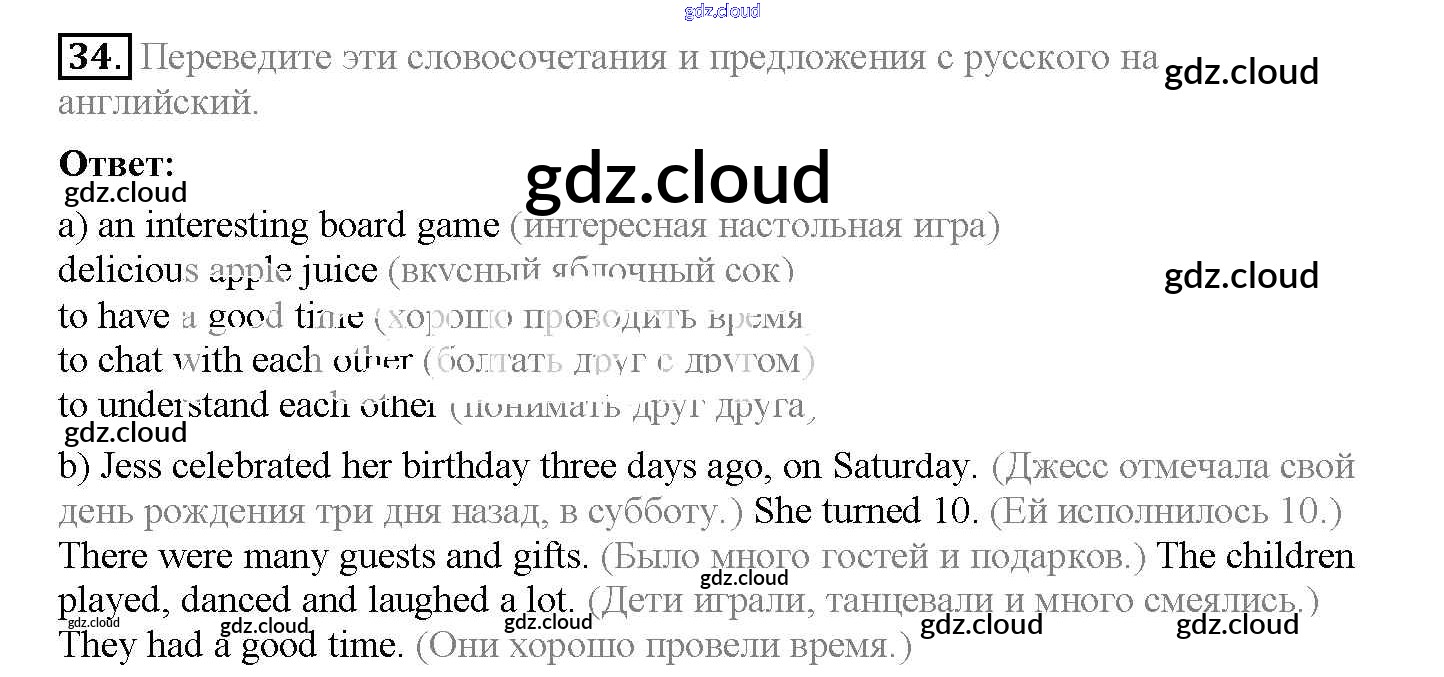 Ответ на задание 34 Рабочая тетрадь Английский язык за 5 (пятый) класс Биболетова, Денисенко, Трубанева Enjoy English 2019, 2015