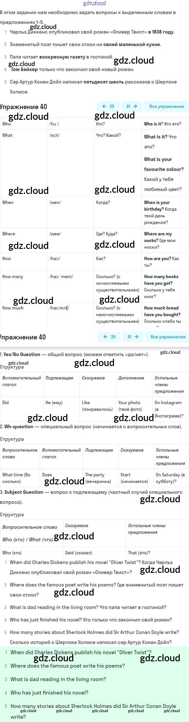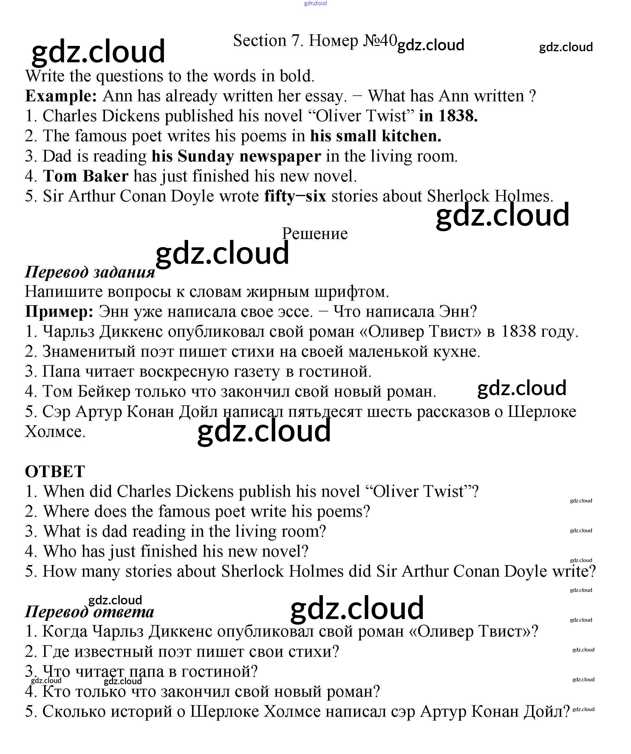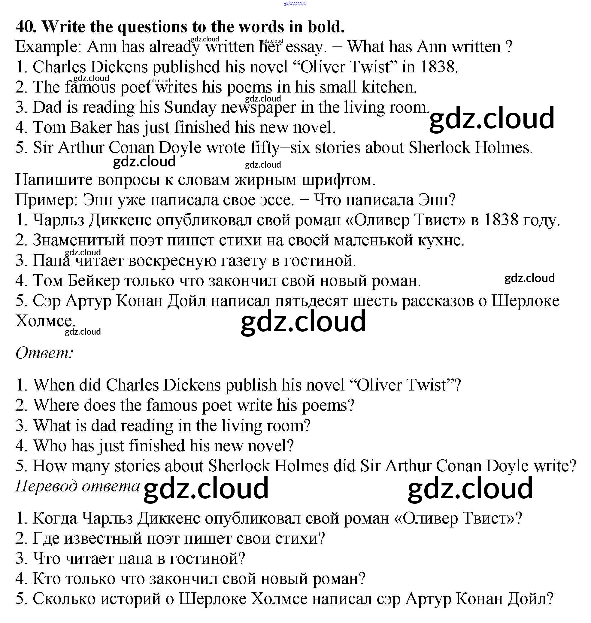 Ответ на задание 40 Рабочая тетрадь Английский язык за 5 (пятый) класс Биболетова, Денисенко, Трубанева Enjoy English 2019, 2015