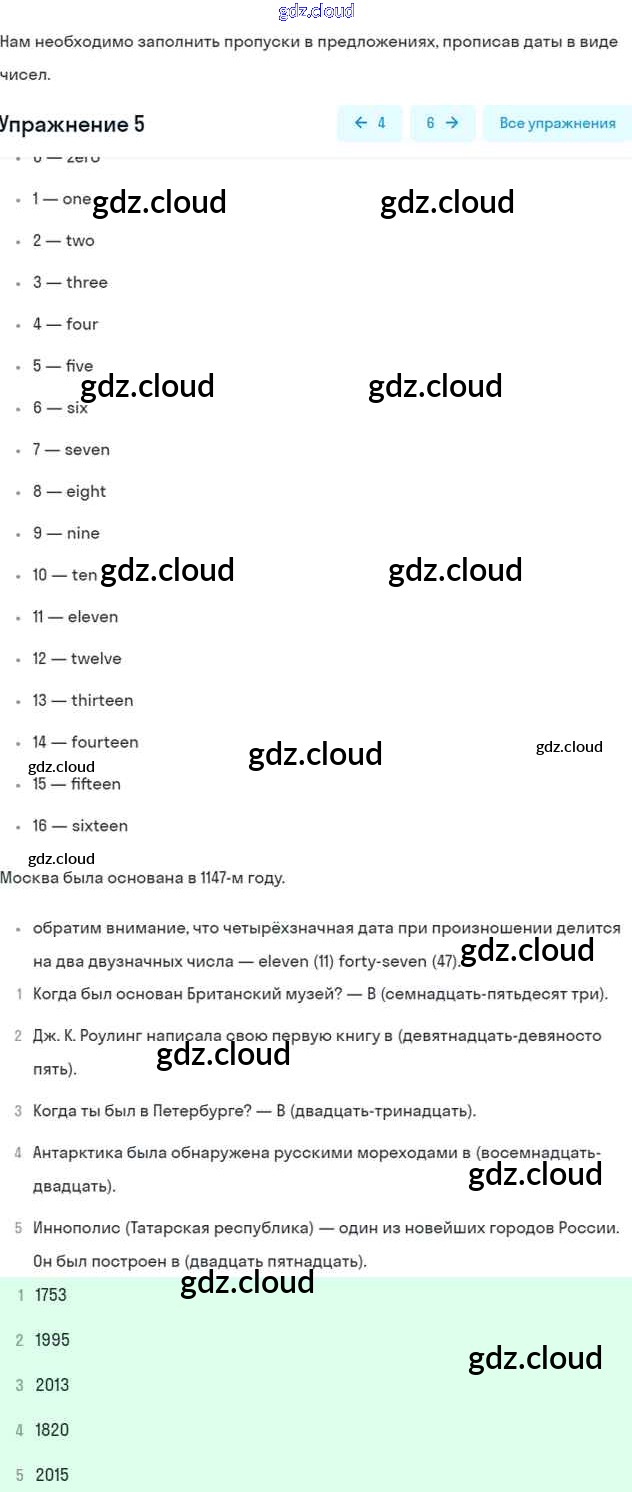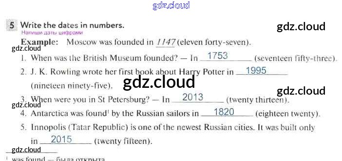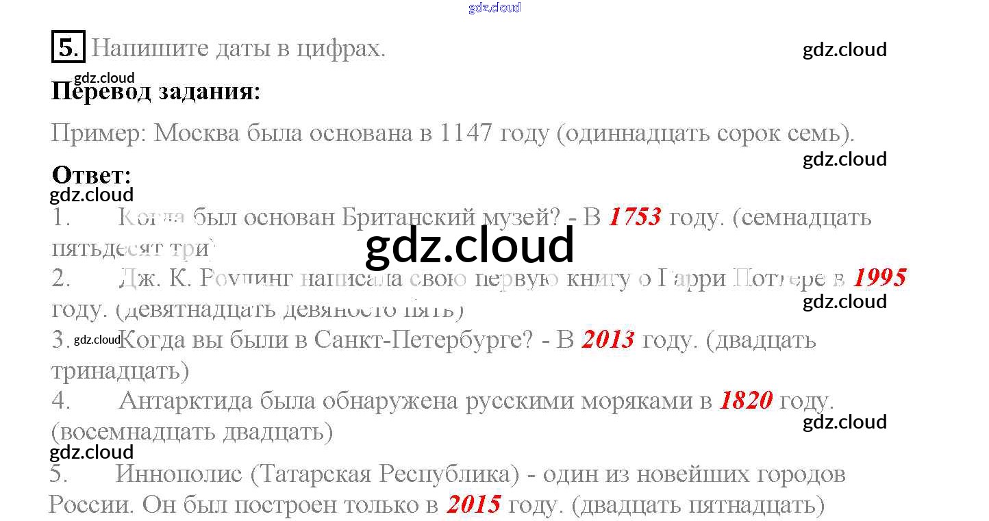 Ответ на задание 5 Рабочая тетрадь Английский язык за 5 (пятый) класс Биболетова, Денисенко, Трубанева Enjoy English 2019, 2015