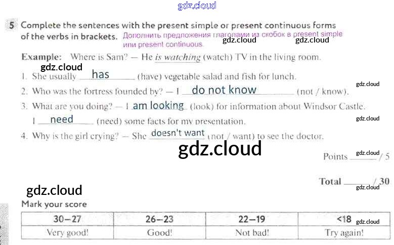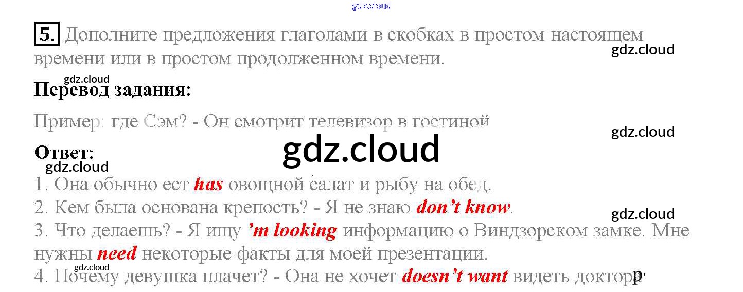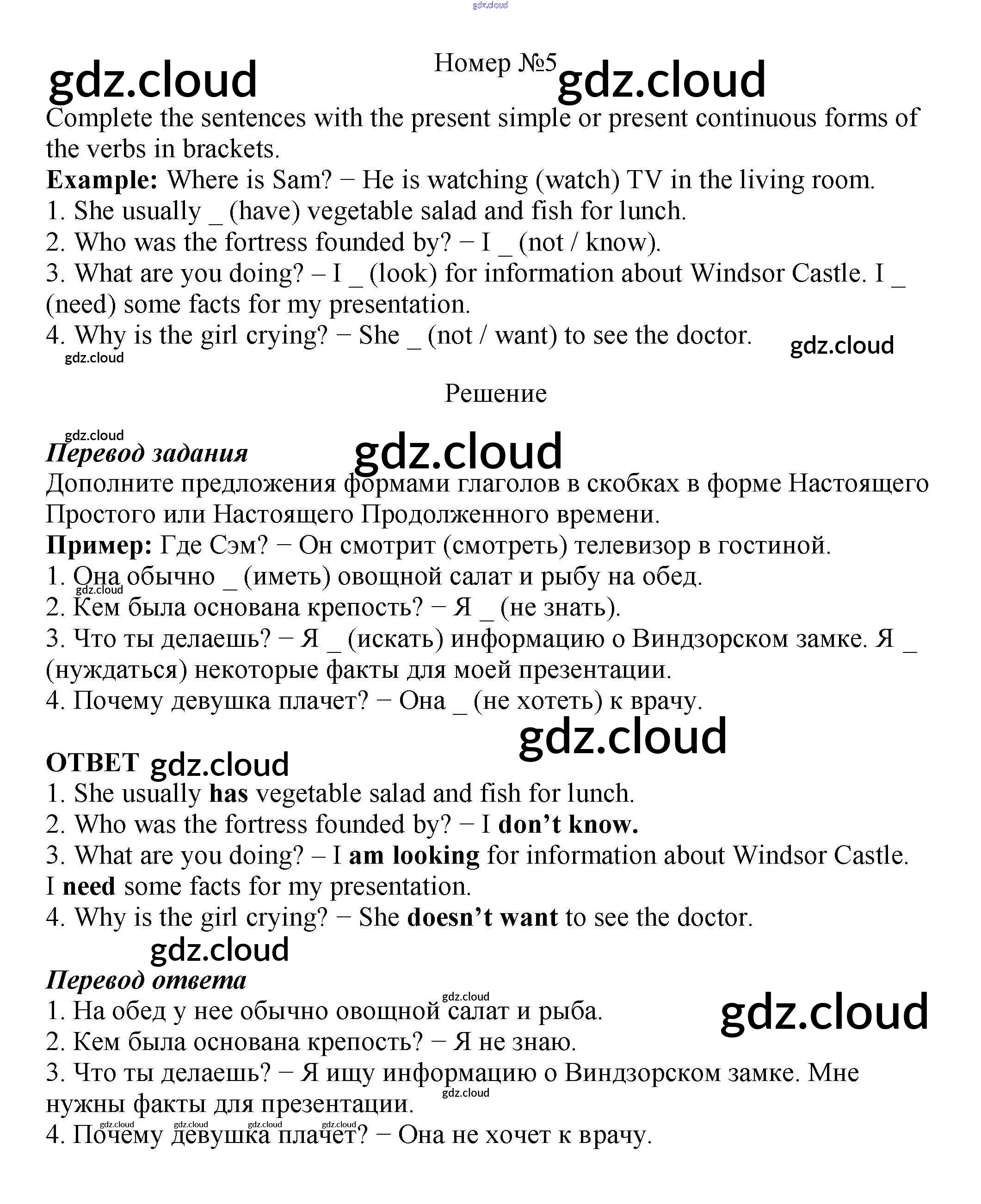 Ответ на задание 5 Рабочая тетрадь Английский язык за 5 (пятый) класс Биболетова, Денисенко, Трубанева Enjoy English 2019, 2015