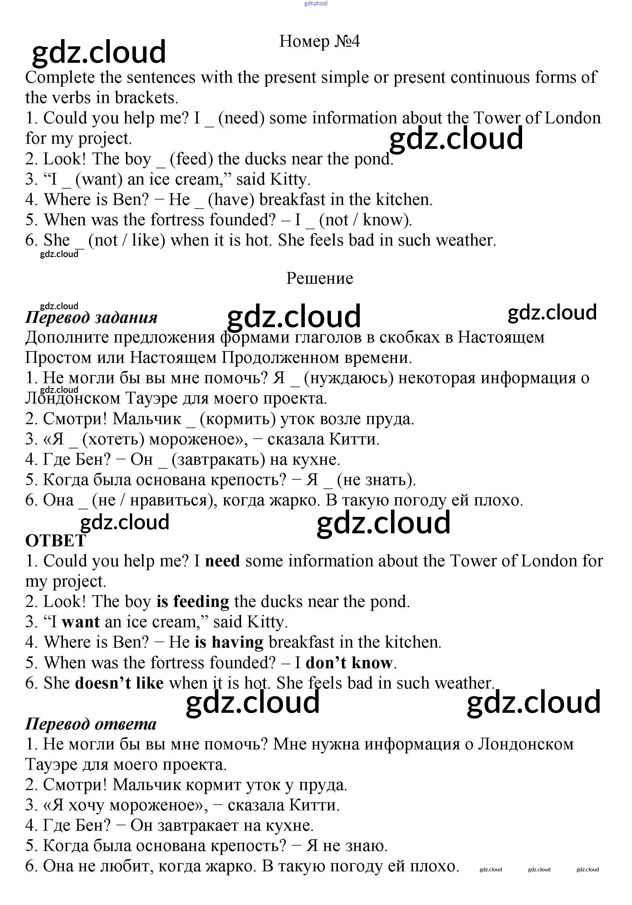 Ответ на задание 4 Рабочая тетрадь Английский язык за 5 (пятый) класс Биболетова, Денисенко, Трубанева Enjoy English 2019, 2015