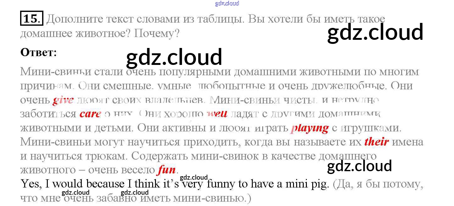 Ответ на задание 15 Рабочая тетрадь Английский язык за 5 (пятый) класс Биболетова, Денисенко, Трубанева Enjoy English 2019, 2015