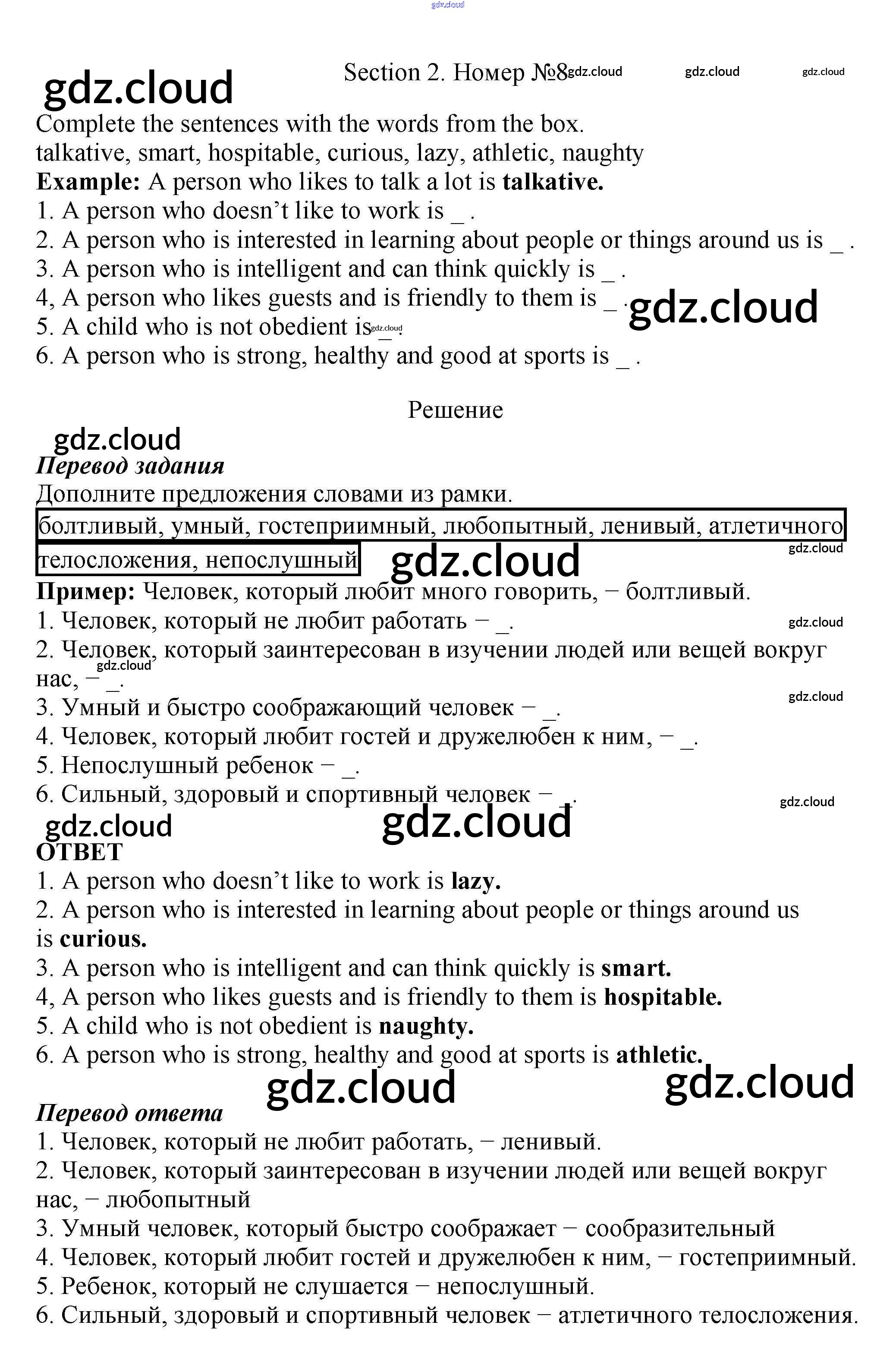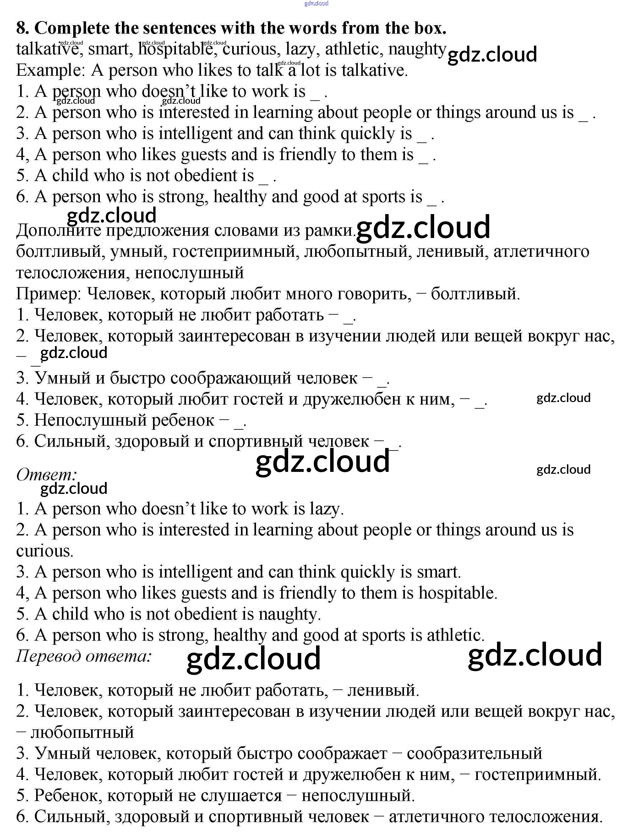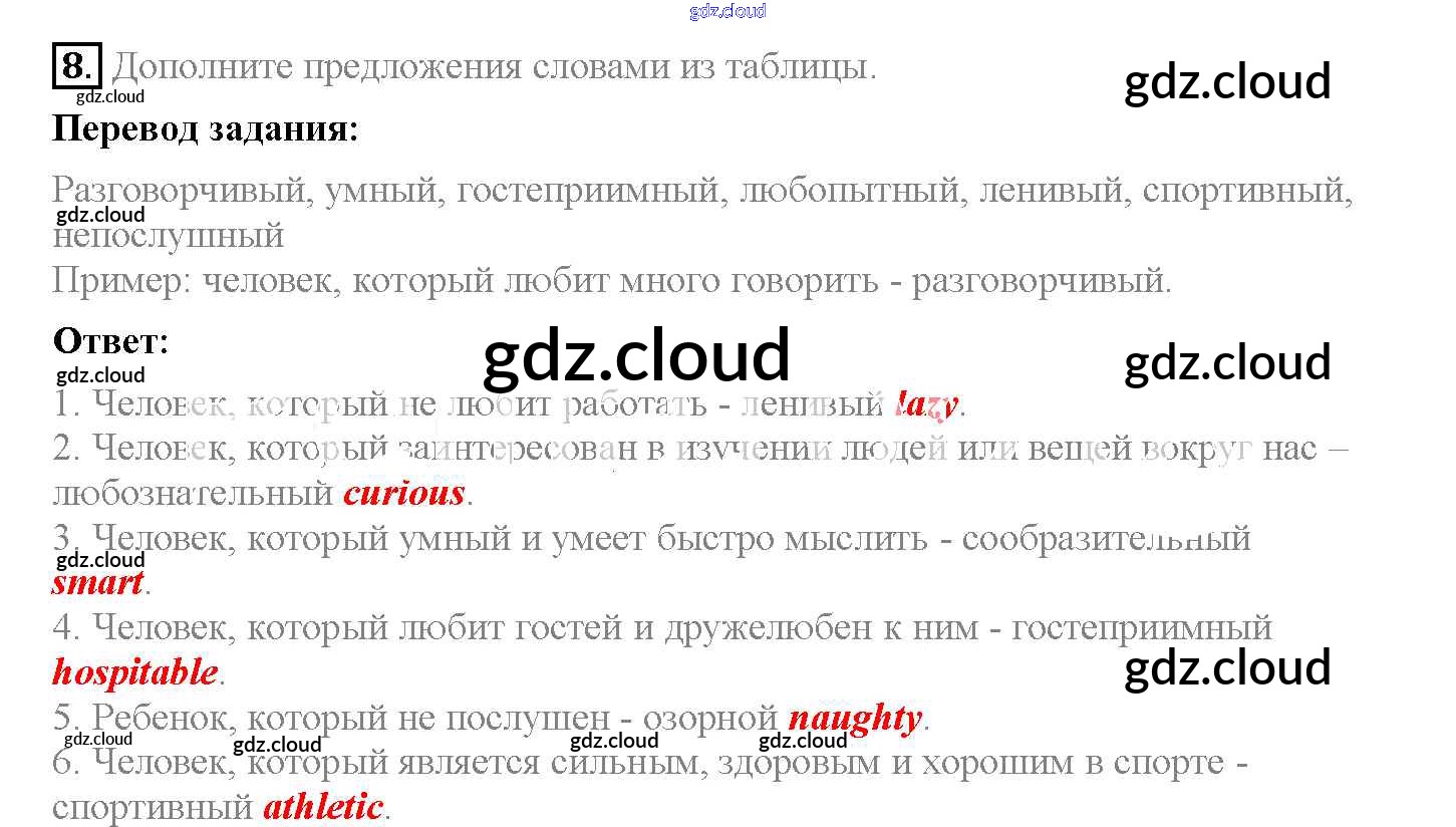 Ответ на задание 8 Рабочая тетрадь Английский язык за 5 (пятый) класс Биболетова, Денисенко, Трубанева Enjoy English 2019, 2015