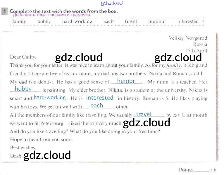Ответ на задание 1 Рабочая тетрадь Английский язык за 5 (пятый) класс Биболетова, Денисенко, Трубанева Enjoy English 2019, 2015