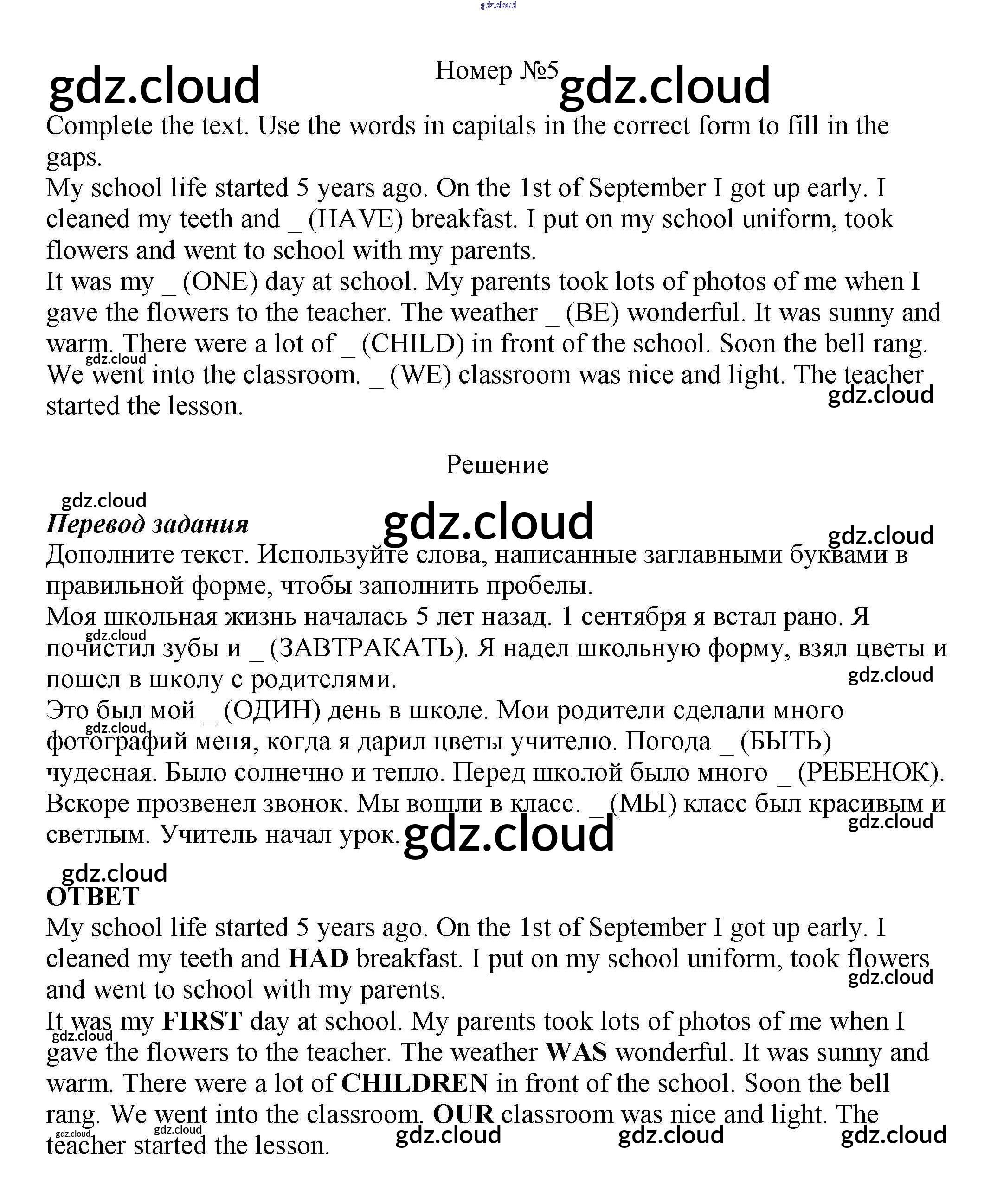 Ответ на задание 5 Рабочая тетрадь Английский язык за 5 (пятый) класс Биболетова, Денисенко, Трубанева Enjoy English 2019, 2015