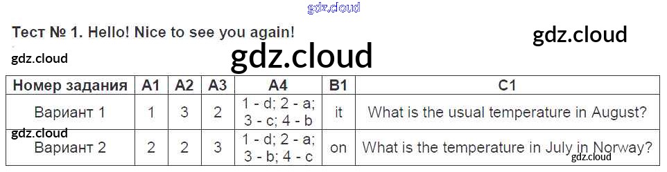 Ответ на задание 1 Контрольно-измерительные материалы (КИМ) Английский язык за 5 (пятый) класс Лысакова, Сахаров, Сухоросова 2017